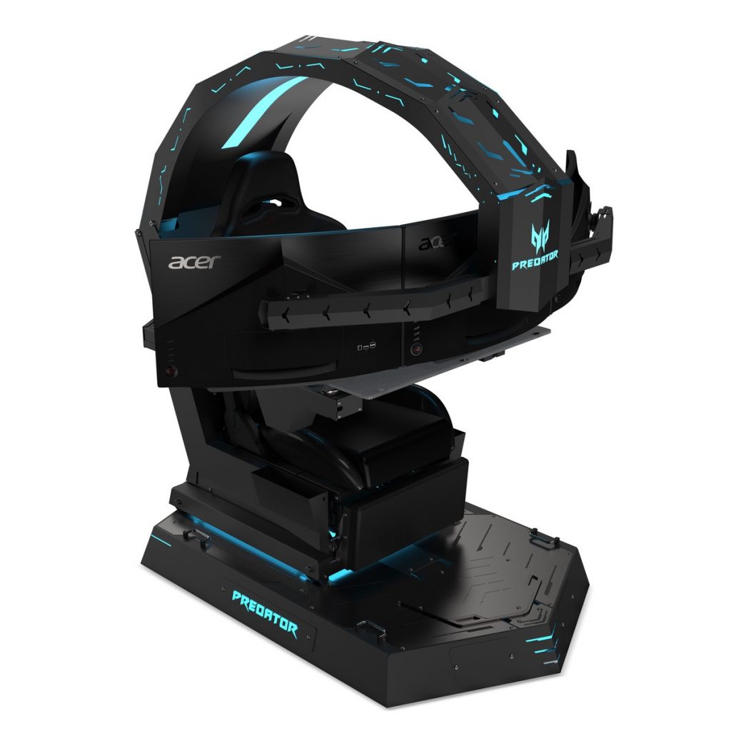 Der Predator Thronos läutet die nächste Evolutionsstufe der Gaming-Sessel ein. Wie ein herrschaftlicher Thron umschließen sein massives tiefschwarzes Stahlskelett und die ergonomische Sitzschale mit Deep-Impact-Vibration-Effekt den Spieler. Bis zu drei 68,6 cm (27 Zoll) große Gaming-Monitore lassen sich in die Konstruktion integrieren und sind mittels einer Overhead-Halterung optimal im Sichtfeld angebracht. Damit versetzt der monströse Stuhl den Gamer direkt ins Geschehen. Dank des ergonomischen Designs der Sitzschale mit bis zu 140 Grad Verstellbarkeit und einer Fußstütze findet jeder Gamer seine optimale Position. Befeuert durch einen leistungsstarken Predator Orion-Desktop und ausgestattet mit Predator Headset, Maus und Tastatur auf einer mechanisierten Ablage inklusive Getränkehaltern wird der Gaming-Thron zur ultimativen Höhle des Spielers.