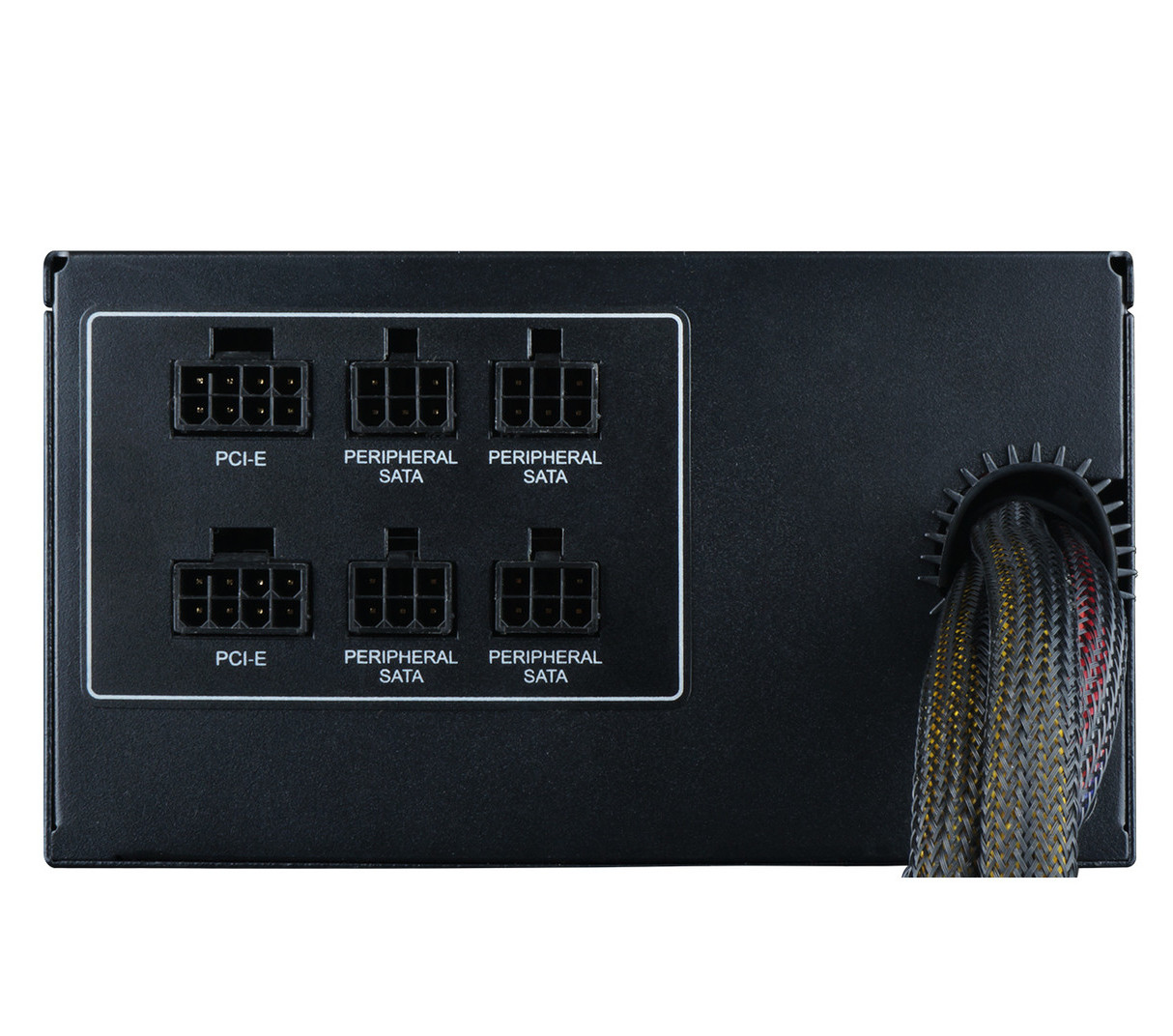 Die zwei Raidmax Thunder RGB Varianten werden mit teil-modularen Kabeln geliefert. Ein 24 Pin ATX, ein 4 + 4 EPS und zwei 6 + 2 PCIe Stromanschlüsse sind fest mit dem Netzteil verbunden. Die modularen Kabel sind flach, bandförmig. Das 735 Watt Thunder RGB bietet insgesamt vier 6 + 2 PCIe Anschlüsse, acht SATA-Stromversorgungen und drei 4-polige Molex-Anschlüsse. Bei der 535 Watt Variante bleibt es bei zwei 6 + 2 PCIe und drei Molex-Anschlüssen.