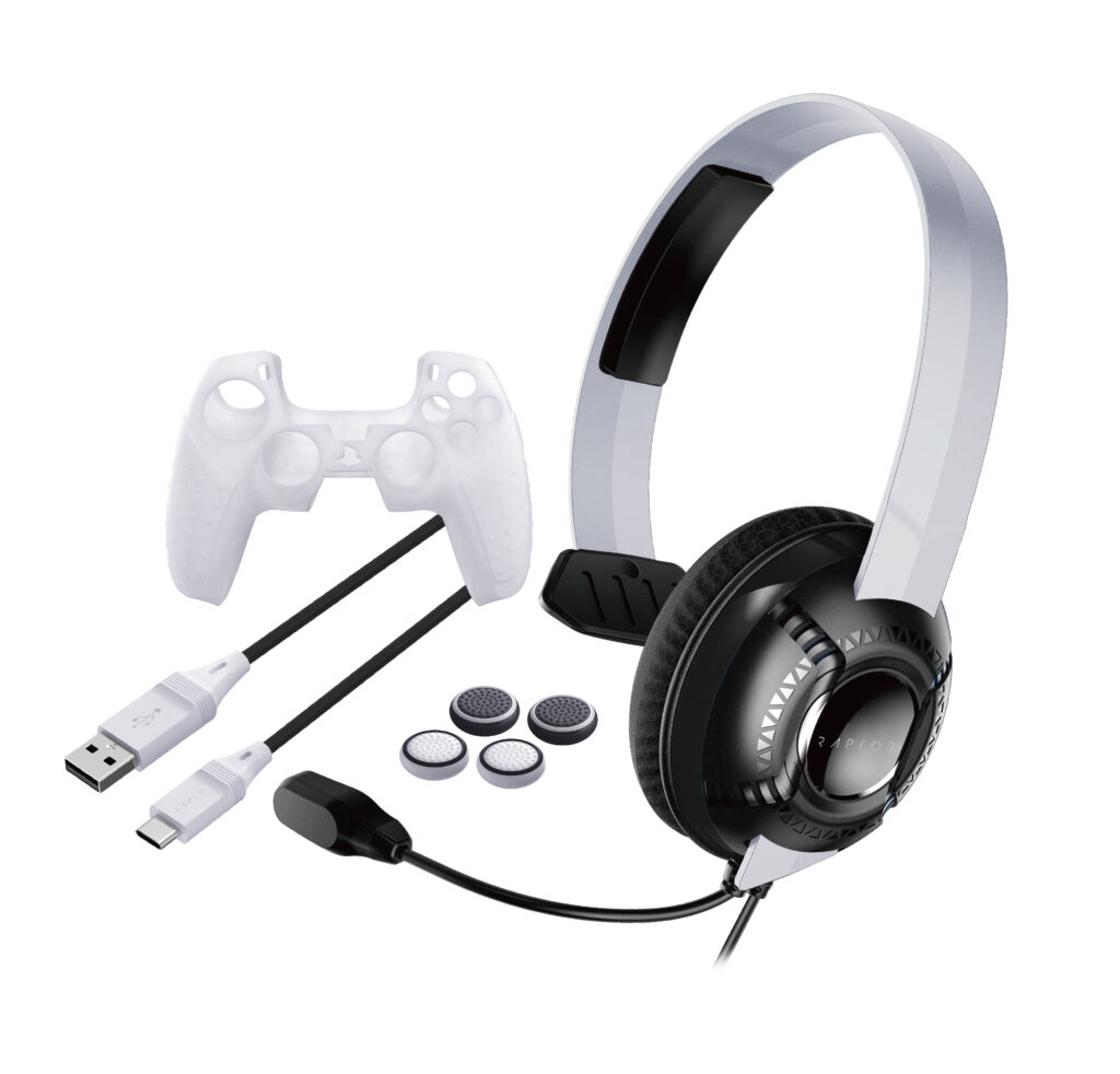 • Ultimatives Starter Kit für PS5 (Chat Headset, Ladekabel, Schutzhülle, Ergo-Aufsätze für Daumentasten) RAPTOR-GAMING HX200