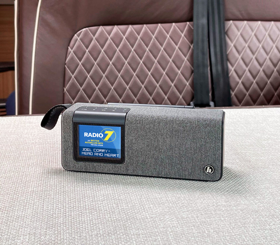 Mit den zwei Direktwahltasten muss man auch im Urlaub nicht auf Komfort verzichten, da diese die Lieblingssender speichern und direkt ohne Suchen aufrufen. Ein 2,4-Zoll-großes Farbdisplay erleichtert die Bedienung und gibt dem handlichen Digitalradio, das für etwa 80 Euro erhältlich ist, den letzten Schliff.