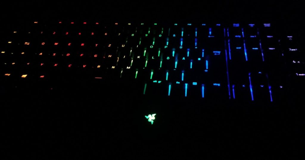 Die eingebauten Razer Green-Switches sind ähnlich wie die Cherry Blue-Switches. Sie haben einen Weg von 1,9mm bis zum Schaltpunkt und sind taktil. Die Betätigungskraft beträgt 50g und sie haben laut dem Hersteller eine Lebensdauer von 80 Millionen Anschläge.