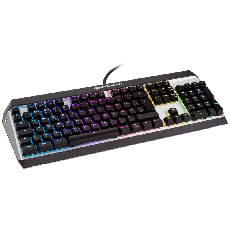 Die Cougar Attack X3 RGB ist eine Premium-Tastatur mit mechanischen Cherry-MX-Switches, die in perfekter Art und Weise auf Pro-Gamer und Enthusiasten zugeschnitten ist. Inspiriert vom Militär und dessen Stealth-Technologie, basiert das Design auf einem geometrischen Grundgerüst und kommt aggressiv daher. Die Tasten sind auf einer gebürsteten Aluminium-Oberfläche angebracht, verfügen über eine RGB-Hintergrundbeleuchtung und stehen frei – unliebsame Krümel dazwischen gehören somit der Vergangenheit an. Über USB angeschlossen und mit Full-NKRO ist die Attack X3 RGB zudem absolut zukunftssicher und für jedes Gefecht gerüstet.