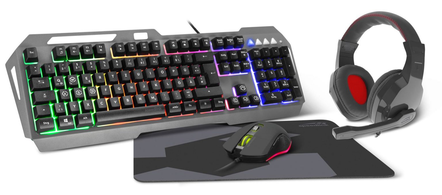 - Gaming Set: Tastatur, Headset, Maus, Mauspad