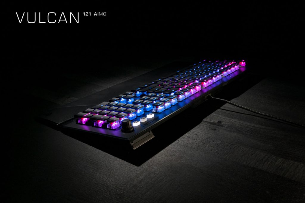 Die Vulcan 121 AIMO besticht mit einer Aluminiumoberfläche in Ash Black und bietet erstmals eine neue, auf Schnelligkeit ausgelegte Variante des ROCCAT-eigenen Titan Switch. Diese neuen Schalter mit der Bezeichnung Titan Switch Speed registrieren Tastenanschläge bis zu 30% schneller als herkömmliche Schalter.