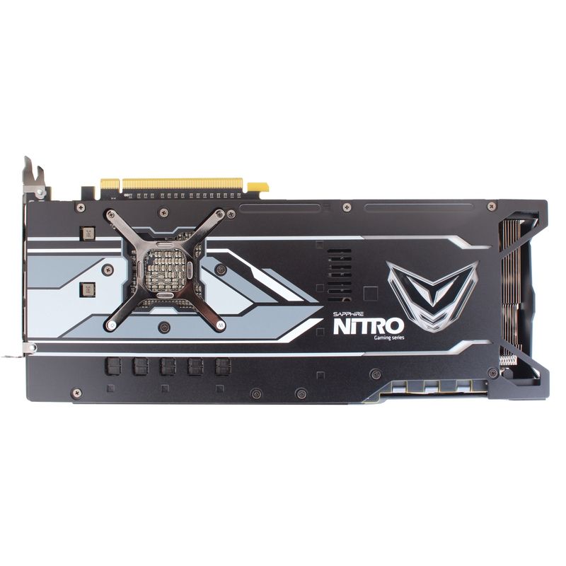 Auch die solide Backplate punktet mit neuem Design, nämlich einem „SAPPHIRE NITRO Gaming Series“-Emblem aus durchscheinendem Material mit blauer LED-Hintergrundbeleuchtung.