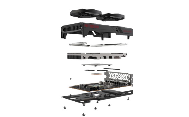 Die völlig aus Metall gefertigte Backplate, die zur Unterstützung der Wärmeableitung entwickelt wurde, ist mit elegantem schwarzem Metall und umwerfenden roten Akzenten gestaltet. Die Grafikkarte PULSE AMD Radeon™ RX 6600 verleiht wahrlich jedem Gehäuse eine starke Gamingästhetik.
