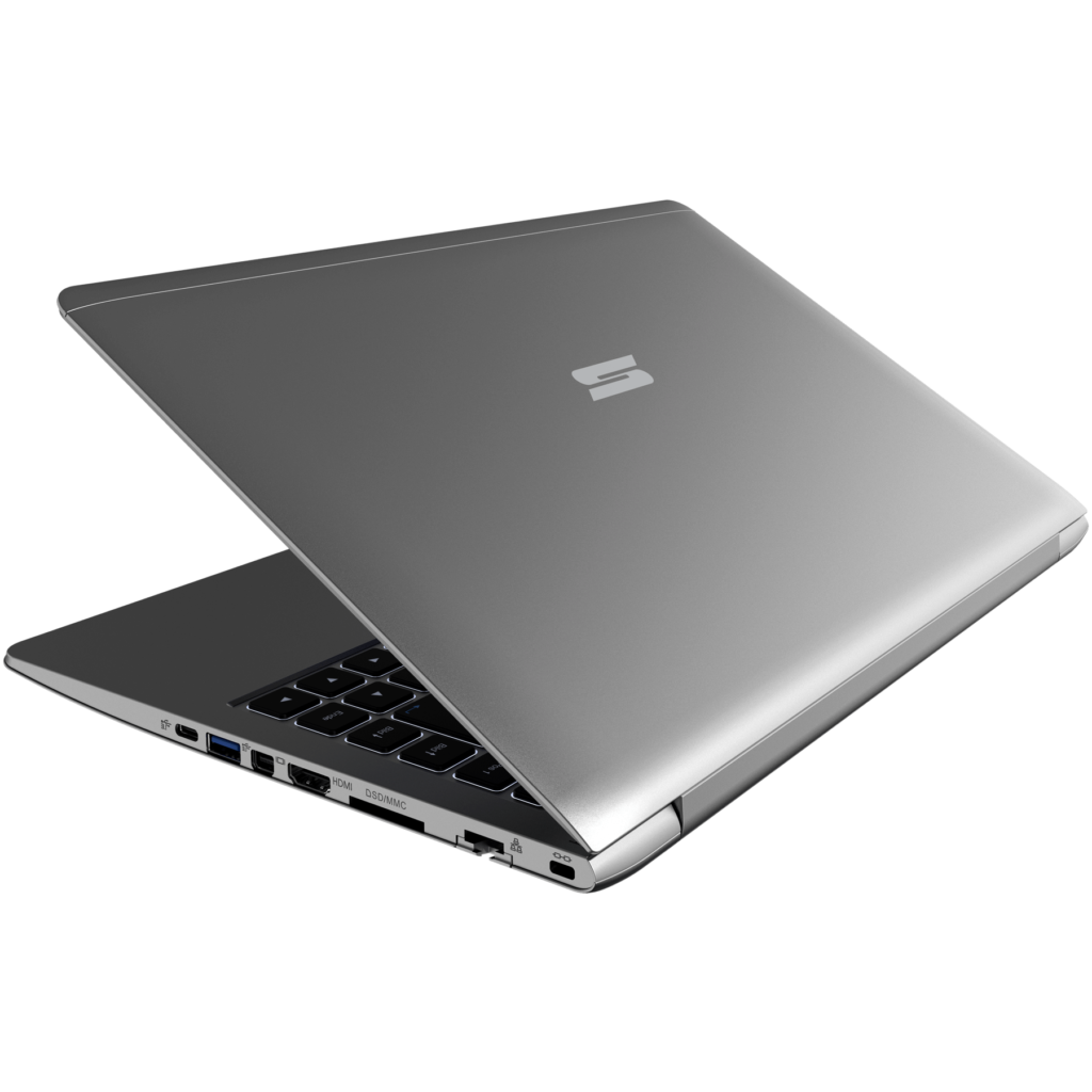 Auf Basis eines robusten, kompakten Gehäuses vereint das SCHENKER SLIM 14 die schlanken Maße (Grundfläche: 32,9 x 22,5 cm) und das geringe Gewicht (rund 1,4 kg) eines Ultrabooks mit dem eleganten Auftritt eines überwiegend aus anodisiertem Aluminium gefertigten, mobilen Begleiters. Trotz seiner Bauhöhe von nur 1,88 cm bietet der 14-Zöller eine für diese Geräte- und Größenklasse beachtliche Vielfalt an internen Erweiterungsmöglichkeiten und externen Schnittstellen.