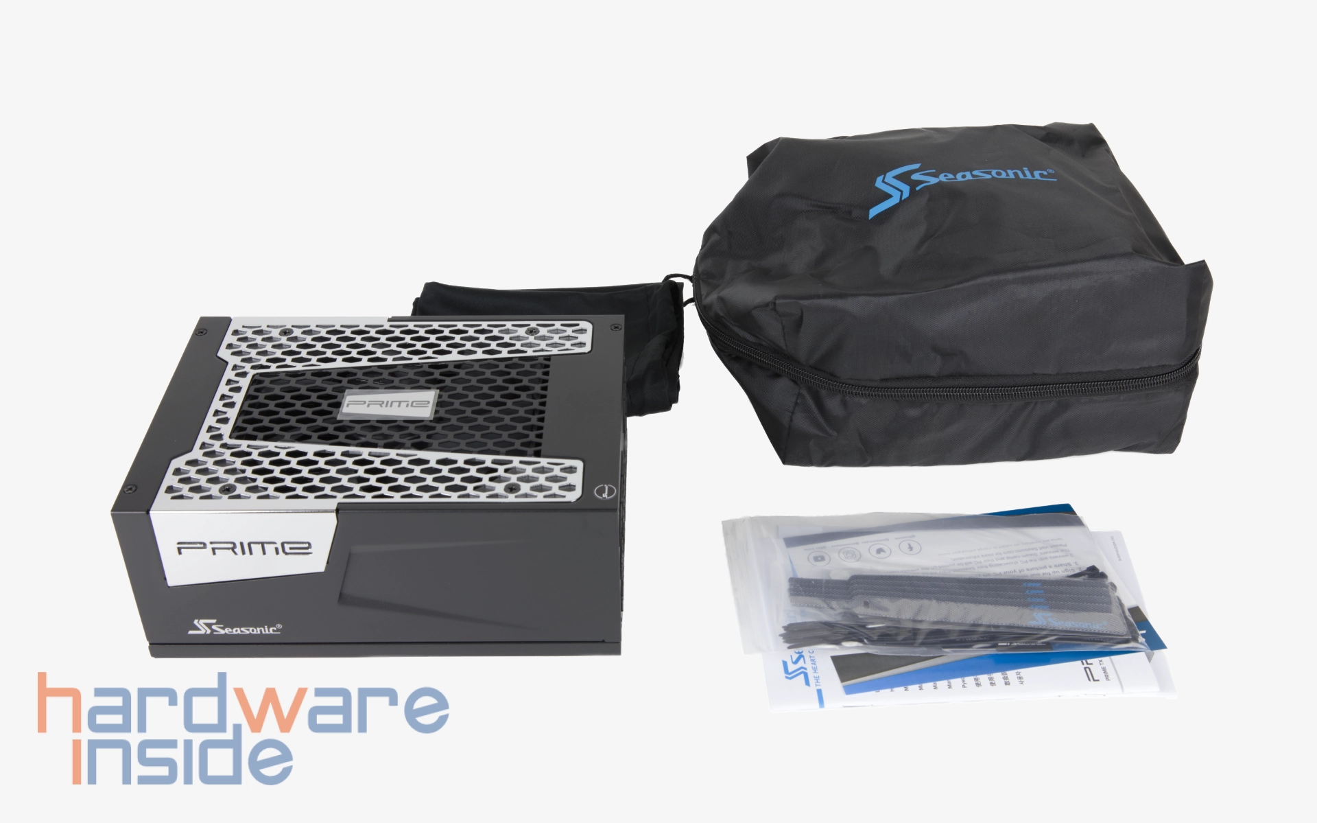 Beim Öffnen der Verpackung fällt sofort auf, dass Seasonic dem Prime TX-1300 nicht nur das Nötigste beigelegt hat. Das Netzteil selbst ist sicher in Schaumstoff gebettet und zusätzlich in einer Stofftasche verpackt, was sowohl Schutz als auch ein wertiges Auspackerlebnis bietet. Die modularen Kabel sind separat in einer eigenen Tasche untergebracht und somit übersichtlich voneinander getrennt.