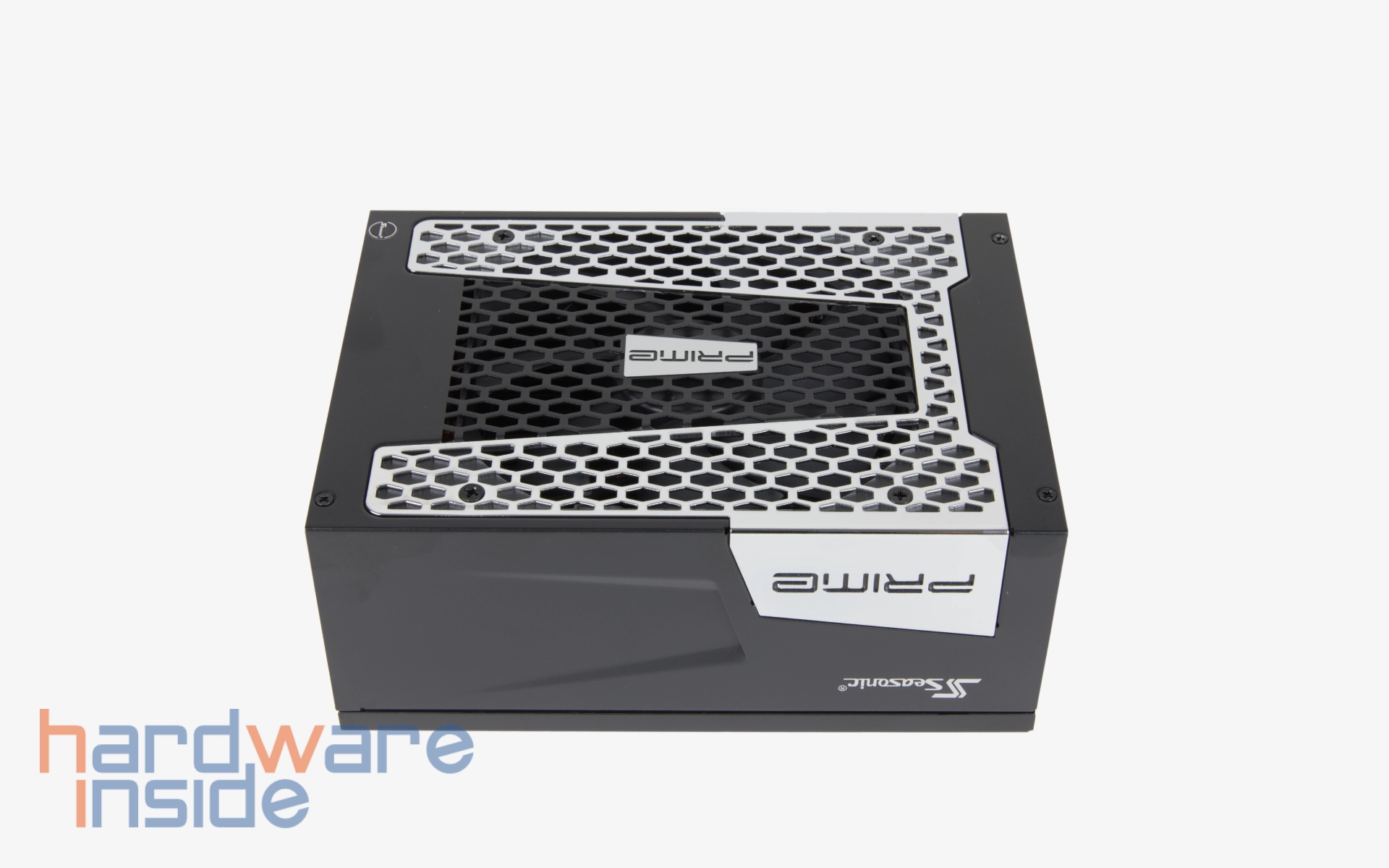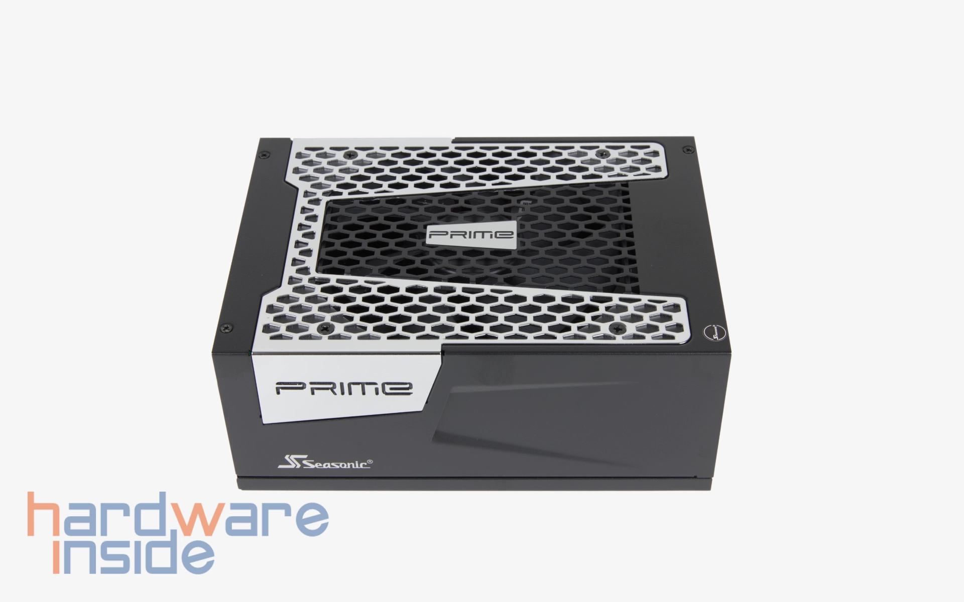 In der Gesamtansicht wird deutlich, dass es sich beim Seasonic Prime TX-1300 um ein Netzteil der Oberklasse handelt. Mit 210 mm Länge überragt es die gängigen ATX-Modelle und erfordert daher ausreichend Platz im Gehäuse. Optisch setzt Seasonic auf eine besonders auffällige Gestaltung: Die Seitenteile tragen silberne, kantig gestaltete Elemente mit Prime-Logo, die sich deutlich von den sonst meist schlichten, schwarzen Netzteilen am Markt abheben. Diese Optik vermittelt bereits auf den ersten Blick einen hochwertigen Eindruck und passt damit auch in Systeme, bei denen das Netzteil durch ein Seitenfenster sichtbar bleibt.