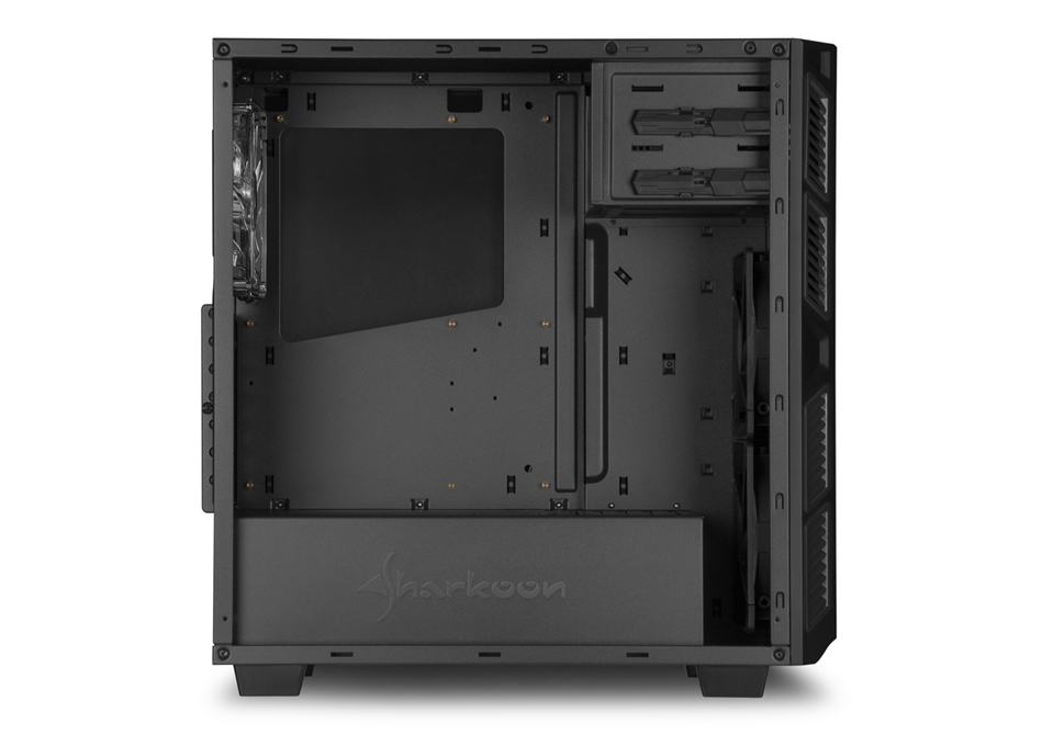 Beide Seitenteile, die Oberseite sowie die Front des Sharkoon AI7000 Silent, sind mit Dämmmatten ausgestattet. Im Gehäuseinneren wird ausreichend Platz für den Einbau der unterschiedlichsten Komponenten geboten: Das Netzteil sowie bis zu drei 3,5-Zoll-Festplatten lassen sich entkoppelt im Tunnel an der Gehäuseunterseite verbauen. Das AI7000 Silent verfügt ferner über zwei Halterungen für 2,5-Zoll-Laufwerke, hinter dem Mainboard. Das Mainboard lässt sich dank zahlreicher Öffnungen diskret verkabeln. CPU-Kühler bis zu einer Höhe von 17,5 cm lassen sich über die Öffnung im Mainboard-Tray installieren. Die maximale Länge der einsetzbaren Grafikkarten beträgt 38 cm, Netzteile lassen sich bis zu einer Länge von 23 cm verwenden. Die Front bietet Platz für einen 280-mm-Radiator mit einer Gesamtbauhöhe von bis zu 5,7 cm inklusive Lüfter. Wie bei allen neueren Sharkoon-Gehäusen ist die Frontblende zum leichteren Einbau, beispielsweise von 5,25-Zoll-Laufwerken, kabellos gestaltet. Abnehmbare Staubfilter, hinter der Frontblende sowie im Gehäuseboden, schützen die Hardware vor Verschmutzungen. In der Oberseite der Frontblende verfügt das Gehäuse jeweils über zwei USB-3.0-, USB-2.0- und Audio-Schnittstellen. Die USB-3.0-Anschlüsse werden über einen 19-poligen Mainboard-Stecker verbunden und bieten zudem einen alternativen USB-2.0-Abgriff. Hinter der Frontblende befinden sich zwei vorinstallierte 140-mm-Lüfter, in der Rückseite ist ein 140-mm-Lüfter verbaut. Akzente setzten die vorderen Lufteinlässe, welche in rot, grün, blau und in schwarz erhältlich sind, je nach Farbvariante des Gehäuses.