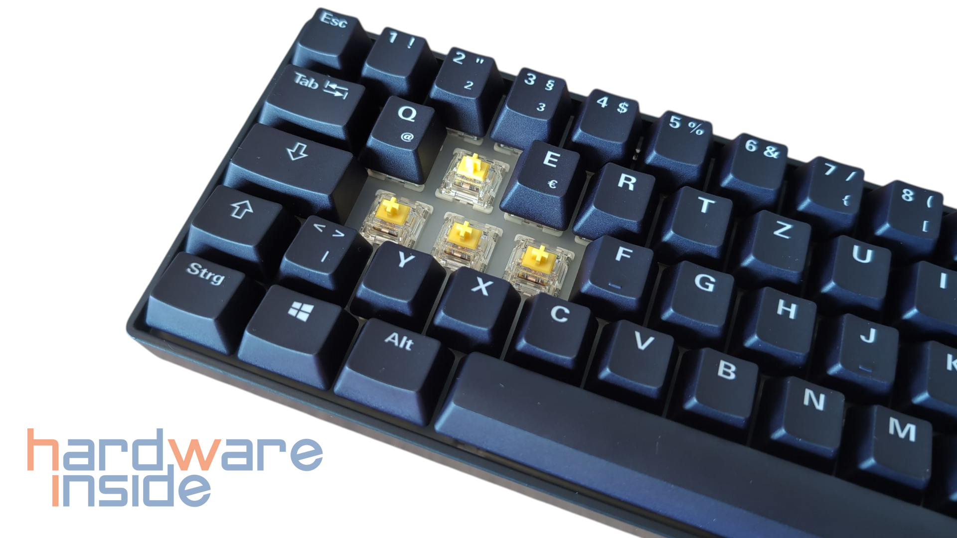 Standardmäßig sind lineare Gateron G Pro 3.0 Yellow Switches verbaut, die mit einer geringen Auslösekraft (50 ± 15 g) und einem direkten, linearen Tippgefühl begeistern. Sie eignen sich sowohl für schnelle Reaktionen im Spiel als auch für Vielschreiber. Dank Hot-Swap-Support (3- und 5-Pin kompatibel) können die Schalter werkzeuglos gegen beliebige Alternativen getauscht werden, entsprechende Werkzeuge sind bereits im Lieferumfang enthalten. Dadurch ist die Tastatur ideal für Individualisten, die ihr Tippgefühl weiter anpassen möchten.