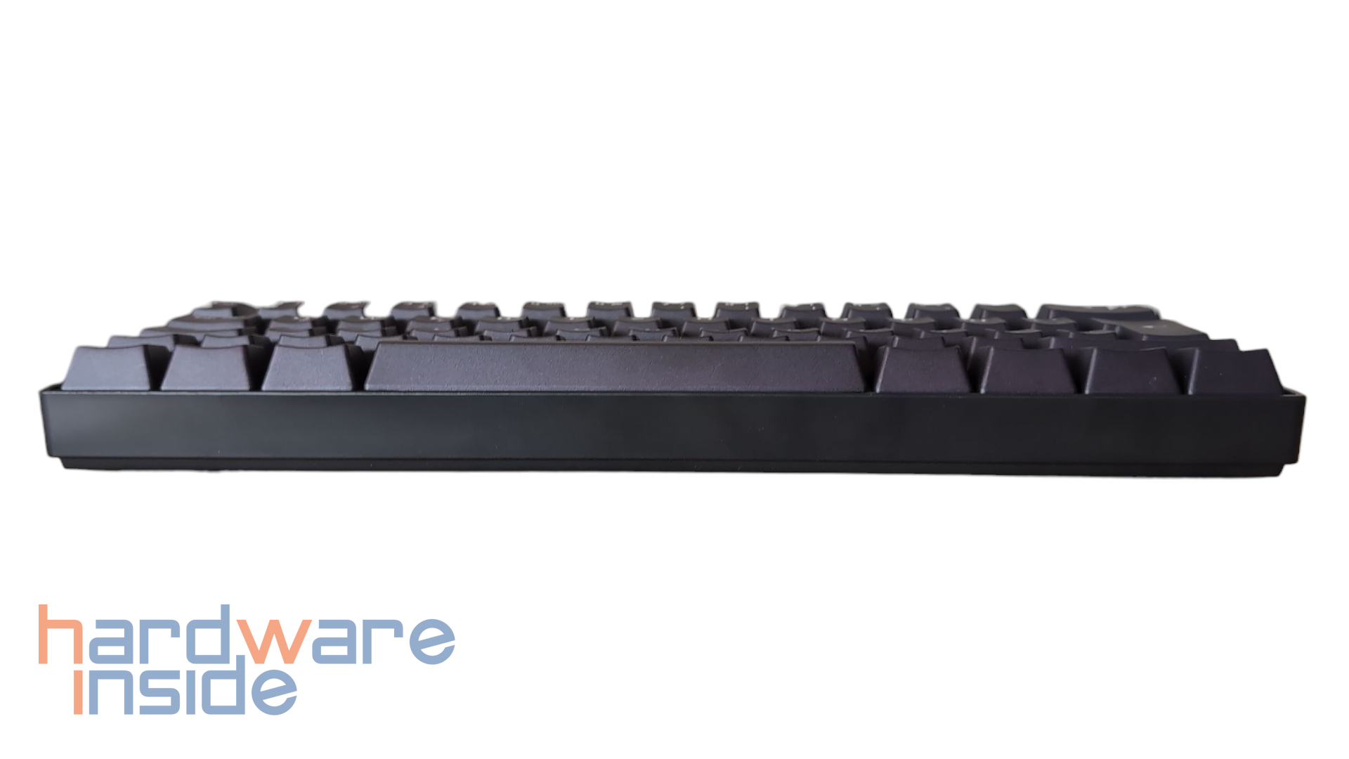 Die SGK50 S4 Gen2 PBT kommt im kompakten 60%-Formfaktor, somit verzichtet sie auf Funktionstasten, Numpad und klassischen Pfeiltastenblock, bleibt damit besonders schmal und lässt mehr Platz auf dem Tisch für Mausbewegungen oder weiteres Zubehör. Weggefallen Tasten werden durch eine Doppelbelegung auf der FN-Ebene kompensiert. Die doppelt beschrifteten Keycaps bestehen aus robustem PBT-Kunststoff, die im Dye-Sub-Verfahren hergestellt werden und versprechen eine hohe Langlebigkeit sowie ein angenehmes Tippgefühl. Auch das Gehäuse ist aus Kunststoff gefertigt, insgesamt bietet die Sharkoon SKILLER SGK50 S4 Gen2 PBT eine gute Verarbeitung.