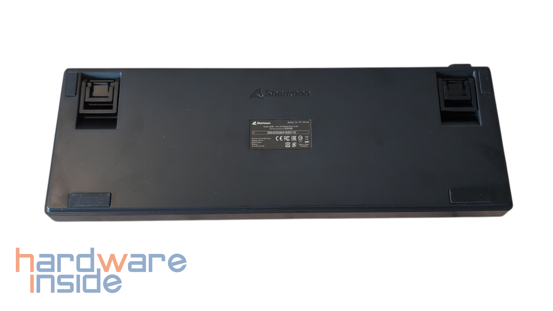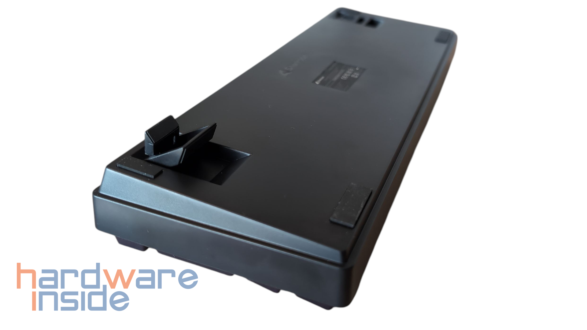 Auf der Unterseite sorgen vier aufgeklebte Gummifüße für einen festen Halt auf dem Schreibtisch. Bei der SKILLER SGK50 S4 Gen2 PBT lässt sich die Neigung dank der beidseitig ausklappbaren Standfüße in zwei verschiedenen Stufen, respektive um maximal 10 mm anpassen. Zudem verfügen auch die ausklappbaren Füße selbst über rutschfeste Gummierungen, sodass die Tastatur stets sicher steht.