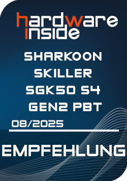 Die SKILLER SGK50 S4 Gen2 PBT von Sharkoon ist aktuell für ca. 77 € im Handel erhältlich und ist eine gelungene 60%-Tastatur für ambitionierte Gamer, Vieltipper und alle, die Wert auf Langlebigkeit, Flexibilität und Individualisierbarkeit legen. Mit Hot-Swap-Switches, hochwertigen PBT-Keycaps, Onboard-Memory und RGB-Beleuchtung hat sie einiges zu bieten. Auch wenn die RGB-Beleuchtung nicht komplett überzeugt und die LEDs an drei Stellen zwischen den Tasten hindurchschimmern. Damit verdient sich die Sharkoon SKILLER SGK50 S4 Gen2 PBT eine Empfehlung.