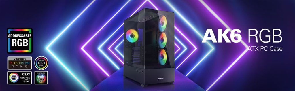 Wer eine moderne Glasoptik für seine Hardware sucht, ist beim AK6 RGB genau richtig. Mit vier vorinstallierten adressierbaren RGB-Lüftern und einem cleveren Lufteinzug über die Seite, ist aber nicht nur die Hardware jederzeit optimal im Fokus, sondern auch ein idealer Airflow. Das auffällige ATX-Gehäuse ist darüber hinaus mit modernen Anschlüssen, breiter BTF-Mainboard-Kompatibilität und jeder Menge Platz für Technik ausgestattet.