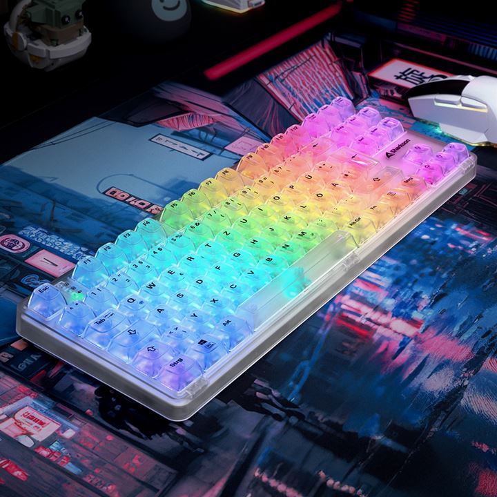 Kristallklares Design und vollgestopft mit Features – das ist unser Crystal Shark. Die Tastatur im transparenten Design und kompaktem TKL-Layout lässt sich für maximale Freiheit beim Gamen sowohl mit Kabel als auch kabellos betreiben. Zudem lässt sich das Design und das Tippgefühl dank einer magnetischen Gehäuseabdeckung und schnellwechselbarer Schalter einfach personalisieren. RGB-Beleuchtung ohne Software natürlich inklusive!