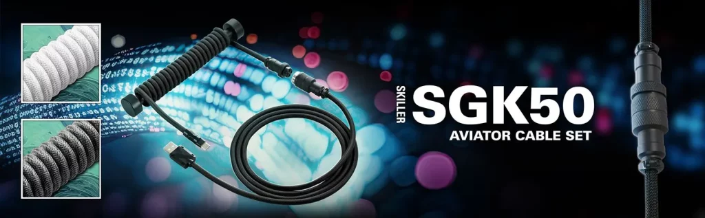 23.10.2024 – Das SKILLER SGK50 Aviator Cable Set ist die ideale Verschönerung für alle Gaming-Tastaturen. Dank des Kabelstabs bleibt das gedrehte Kabel auch nach langem Gebrauch noch in Form und macht auf dem Schreibtisch eine besonders gute Figur. Der Aviator-Anschluss mit Schraubgewinde sorgt dabei für eine jederzeit stabile Verbindung.