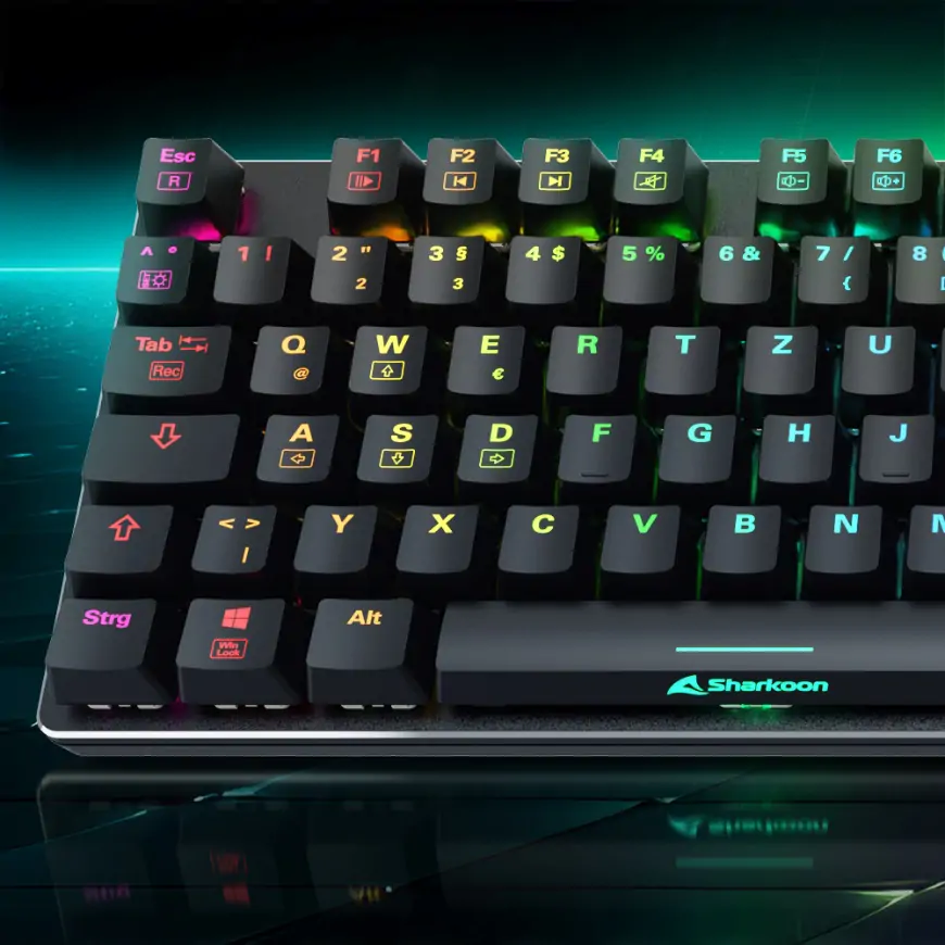 Die RGB-Beleuchtung der Tastatur kann mittels Tastenkombinationen mit verschiedenen Effekten versehen oder spielend einfach angepasst und in fünf Beleuchtungsprofilen abgespeichert werden. Eine Software ist dafür nicht nötig.