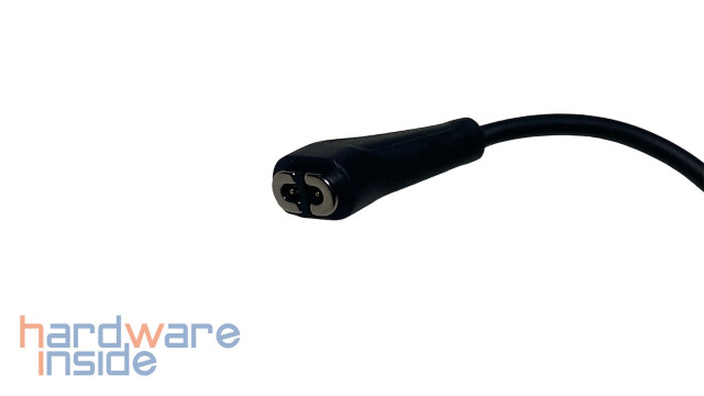 An der rechten Unterseite sind zwei runde schwarze Tasten mit Plus- und Minus-Symbol eingelassen, über die sich die Lautstärke einstellen und das OPENCOMM 2 UC ein- und ausschalten lässt. An der Rückseite des Gehäuses ist der Anschluss zum Aufladen des Akkus verbaut. Der Anschluss besitzt ein wichtiges Feature, denn er erkennt, wenn Feuchtigkeit vorhanden ist, um einen Kurzschluss beim Laden zu verhindern. SHOKZ verwendet dafür eine proprietäre Steckverbindung.