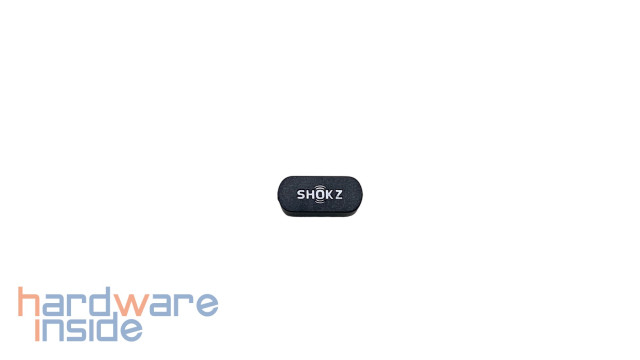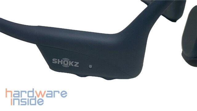 Die Treibergehäuse sind an einem Bügel befestigt, der über das Ohr gelegt wird und so aufgrund des geringen Gewichts praktisch kaum wahrgenommen wird. Hinter dem Bügel befindet sich auf jeder Seite ein verbreiterter Bereich, indem auf der einen Seite der Akku und auf der anderen Seite die Elektronik untergebracht sind. Rechts ist ein SHOKZ-Logo aufgedruckt, davor befindet sich eine LED zur Signalisierung.