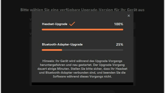 Für den PC oder MAC bietet SHOKZ mit der Connect App eine Möglichkeit, die Updates direkt auf das Headset und über den Dongle zu installieren. Die Bedienung erfordert keinerlei Sonderkenntnisse. In unserem Fall wird direkt ein Update gefunden und durchgeführt.