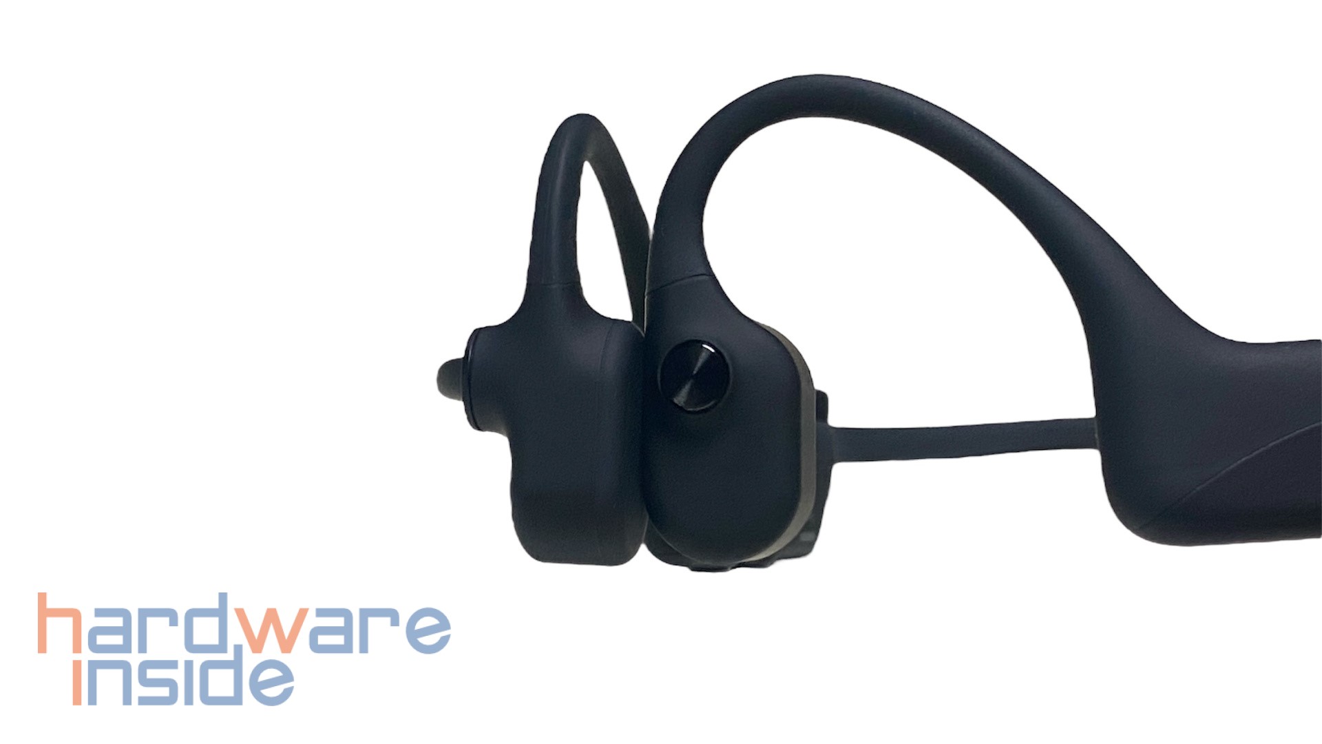 Die Treibergehäuse sind an einem Bügel befestigt, der über das Ohr gelegt wird und so aufgrund des geringen Gewichts praktisch kaum wahrgenommen wird. Hinter dem Bügel befindet sich auf jeder Seite ein verbreiterter Bereich, indem auf der einen Seite der Akku und auf der anderen Seite die Elektronik untergebracht sind. Rechts ist ein SHOKZ-Logo aufgedruckt, davor befindet sich eine LED zur Signalisierung.