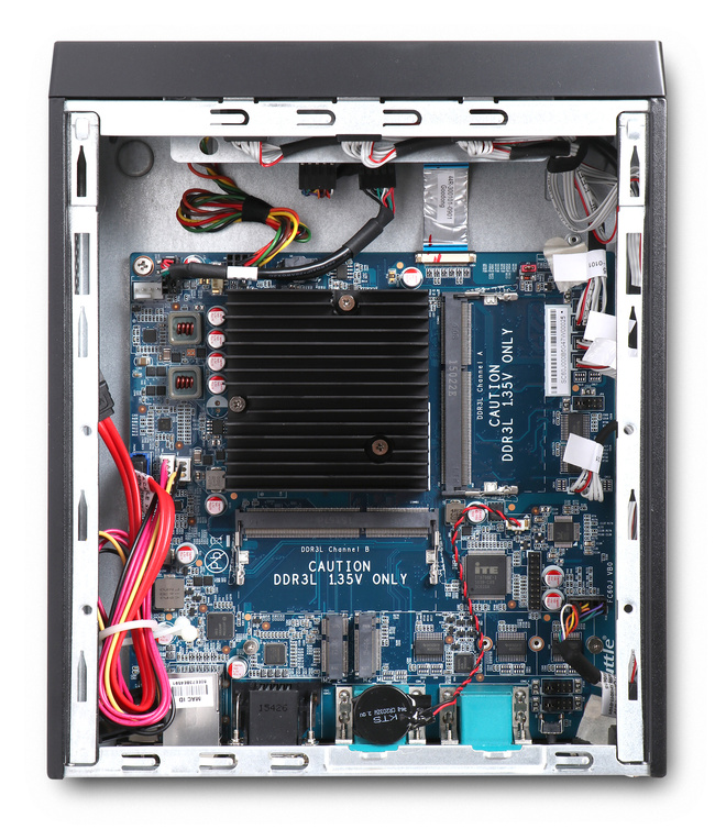 Sein robustes Stahlgehäuse beherbergt das Mainboard mit Intel Celeron Prozessor (Apollo Lake) und Intel HD Graphics 500, bis zu 8 GB DDR3L-Speicher und je nach Bedarf eine 3,5″-Festplatte oder 2,5″-SSD. Die zwei freien M.2-Steckplätze (1x M.2-2280 und 1x M.2-2230) können z.B. für eine NVMe-SSD und ein WLAN-Modul verwendet werden. Verteilt auf Front- und Rückseite reihen sich HDMI, VGA, 2x USB 3.0, 4x USB 2.0, Gigabit Ethernet, Audio-Anschlüsse und die acht seriellen Schnittstellen aneinander.