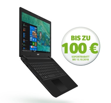 Ahrensburg, 14. September 2018 – Acer startet morgen eine große Rabatt-Aktion für Notebooks seiner AMD basierten Aspire 3-Serie1. Kunden, die im Aktionszeitraum bis einschließlich 15. Oktober ein teilnahmeberechtigtes Gerät erwerben, erhalten direkt beim Kauf bis zu 100 Euro Rabatt. Mit unterschiedlichen Ausstattungsvarianten ist für jeden Geschmack das richtige Gerät dabei.