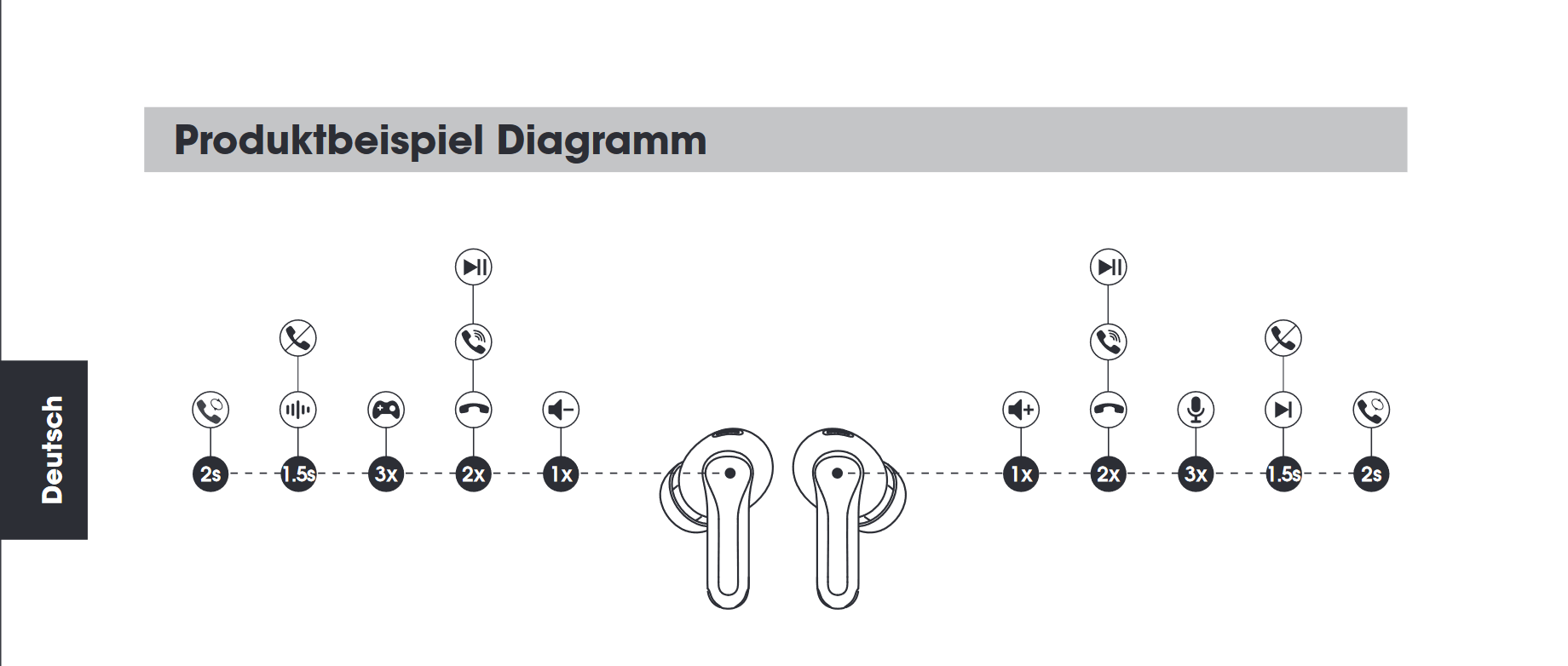 Die Bedienung der Kopfhörer erfolgt durch einfaches Berühren des Logos. Standardmäßig gibt es fünf Hauptfunktionen. Die Gesten können nicht weiter bearbeitet werden.
