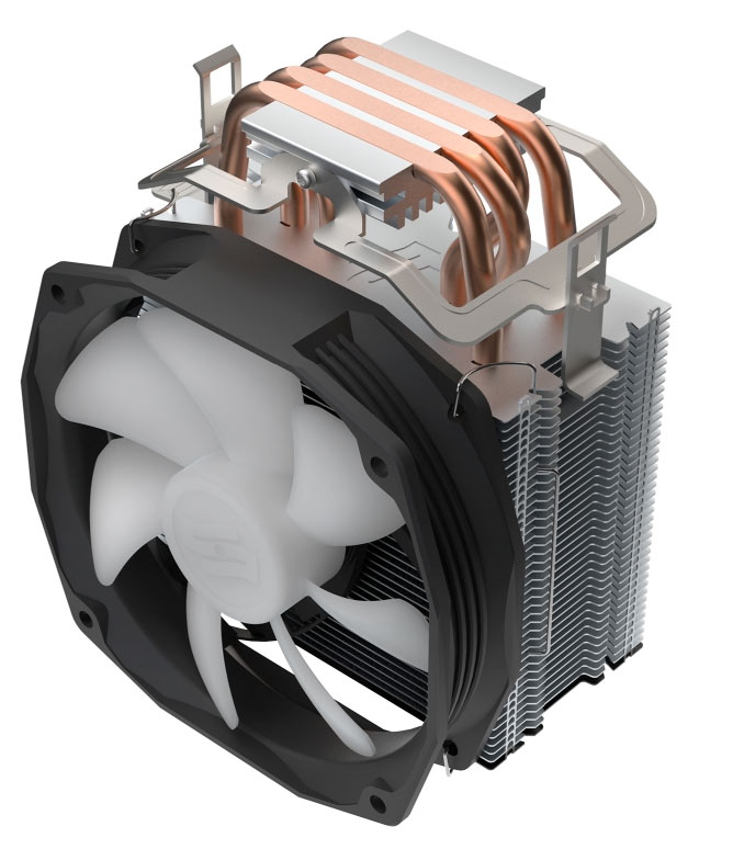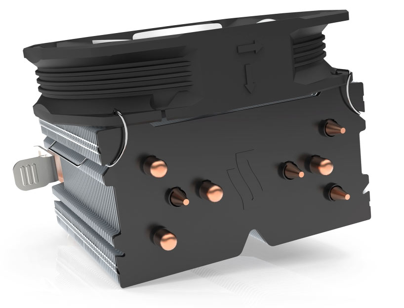 Trotz seiner kompakten Größe und des geringen Gewichts von 476 Gramm, ist der CPU-Kühler in der Lage, eine sehr effektive Wärmeabführung sicherzustellen. Erreicht wird dies dank der Kombination aus vier leistungsstarken Heatpipes mit 6-Millimeter Durchmesser und der HE Technologie, bei der die Heatpipes direkt auf dem Heatspreader des Prozessors aufliegen.