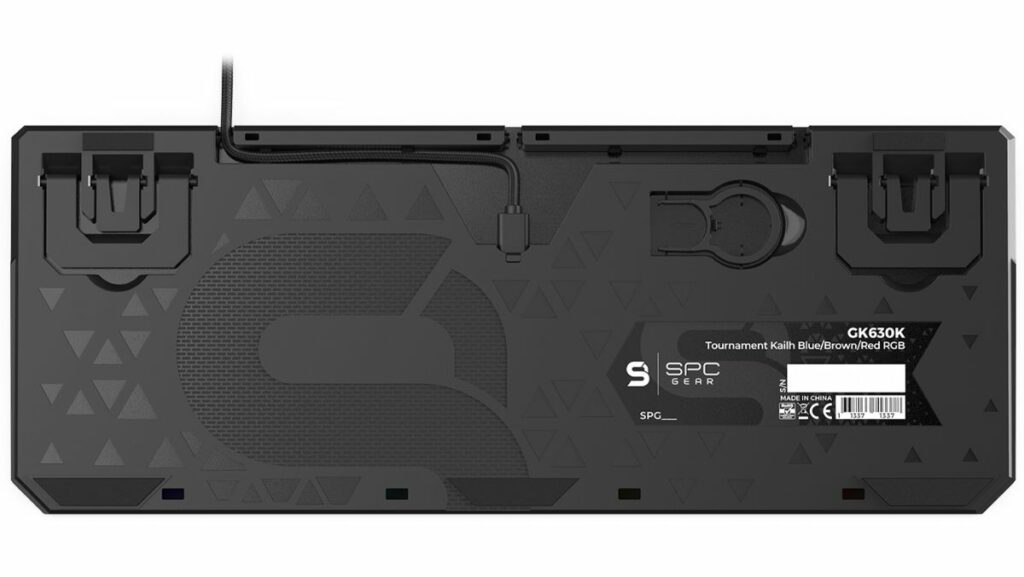 Das kompakte tenkeyless-Format zeichnet sich durch den fehlenden Ziffernblock aus. SPC Gear hat sich dieses Design zunutze gemacht und die GK630K um einige Anpassungsmöglichkeiten erweitert. Doppelte Füße ermöglichen die Positionierung der Tastatur in drei verschiedenen Höhen, je nach Vorliebe des Anwenders. Ein weiteres wichtiges Anpassungsmerkmal ist das abnehmbare USB-C Kabel mit den vorbereiteten Kanälen an der Unterseite der Tastatur. Dank diesen ist es möglich, das Kabel in einer von drei Positionen anzuordnen und es sogar komplett auszutauschen, wenn es beschädigt ist oder ein längeres oder kürzeres Kabel benötigt wird. Darüber hinaus können alle Tastenkappen mit dem mitgelieferten Werkzeug, das sich an der Unterseite der Tastatur befindet, entfernt werden.