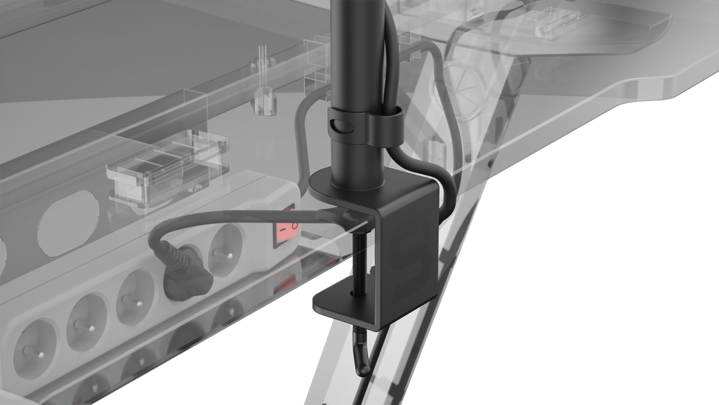 Der SPC Gear Atlas 100 ist extrem einfach zu installieren und muss nur an der Tischkante angeschraubt werden. Die Halterung kann an Tischplatten mit einer Stärke von bis zu 60 mm montiert werden. Die breite Klammer verteilt den Druck gleichmäßig und gibt dem Monitor die ultimative Stabilität.
