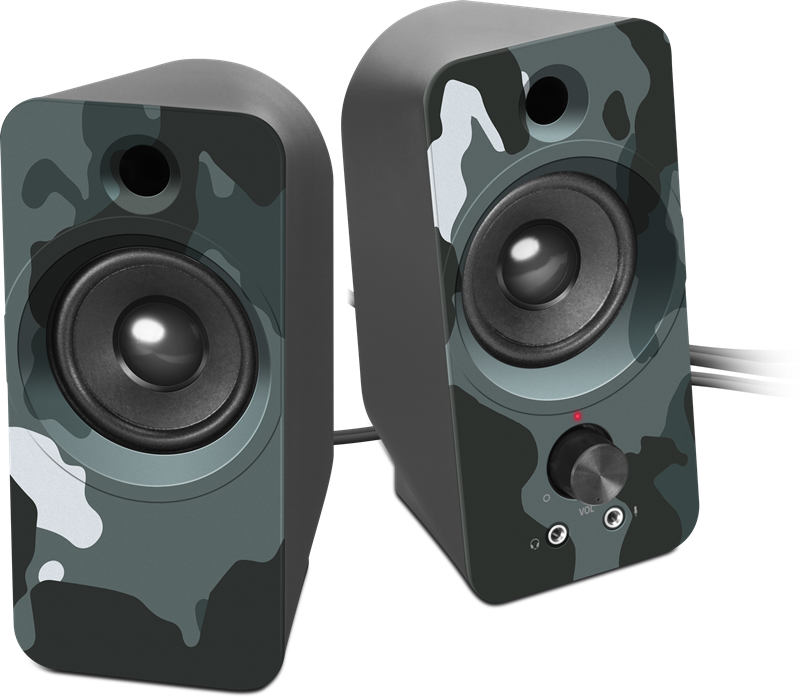 Die DAROC Stereo Speaker sind kompakt, dynamisch und vor allem eines: rundum praktisch. Sie benötigen dank USB-Stromversorgung keine Steckdose und passen auf jeden Schreibtisch. Und wo sie Platz finden, setzen sie nicht nur akustisch, sondern auch optisch Akzente. Und das in zwei Farbvarianten – elegantes Schwarz oder cooles Blau-Camouflage. Besonders smart: An der Vorderseite finden sich zwei Anschlüsse für Kopfhörer oder Headsets, für Videoanrufe müssen die Lautsprecher somit nicht erst ausgestöpselt werden.