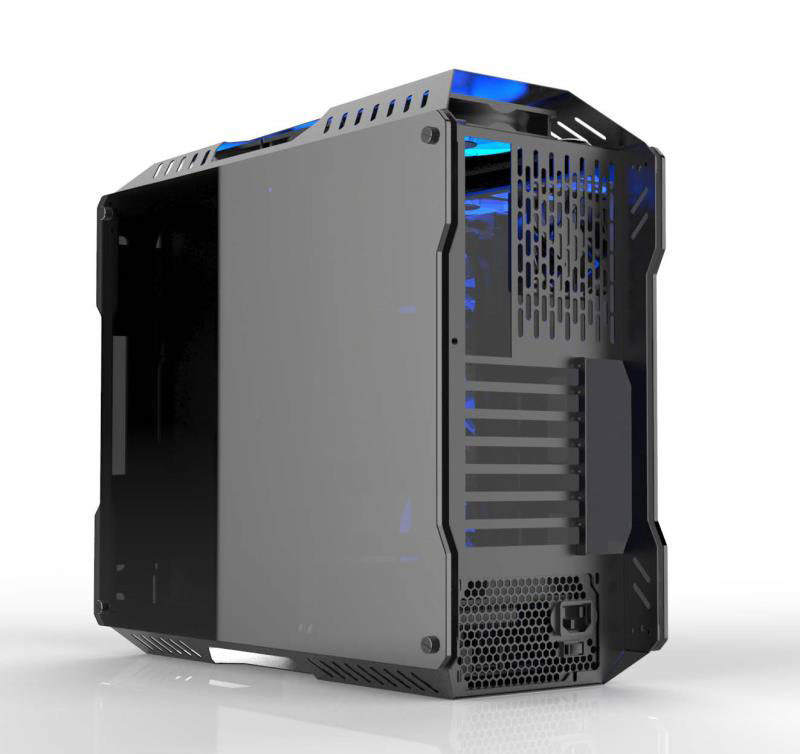 Das TARAXX PC-Chassis mit linker und rechter Seitenwand aus 4 mm gehärtetem Glas, bietet optimalen Platz im Gehäuse. Darüber hinaus enthält die schwarz beschichtete SPCC-Struktur mit 1,2 mm Dicke, einen großen CPU-Kühlerabstand von 135 mm. Es bietet Platz für große Lüfter und einen 350-mm-Grafikkartenabstand für eine lange Grafikkarte.