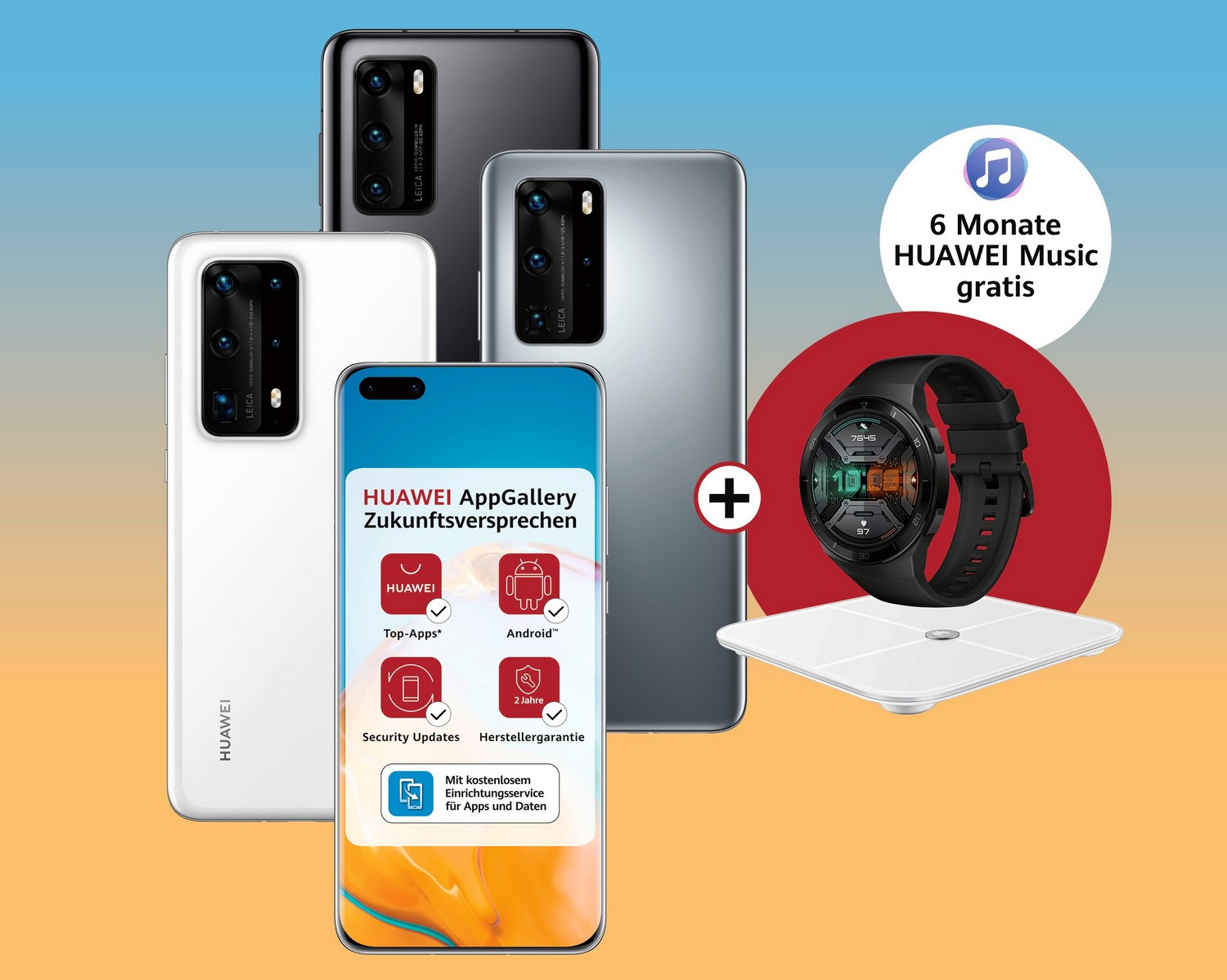 Die Temperaturen steigen, es ist länger hell draußen – der Sommer ist endlich da. Und damit auch die Pläne, wieder mehr Sport treiben zu wollen. Damit Kunden ihre persönlichen Ziele einfacher erreichen können, präsentiert HUAWEI seine sportlichen und leistungsstarken Bundles. Wer sich ab dem 18. Juni bis zum 31. Juli 2020 für ein HUAWEI P40, HUAWEI P40 Pro und HUAWEI P40 Pro+ entscheidet, erhält sowohl die HUAWEI Watch GT 2e als auch die HUAWEI Körperfettwaage im Gesamtwert von 238,99 Euro kostenlos dazu. Käufer des HUAWEI P30, HUAWEI P30 Pro und HUAWEI P30 Pro NEW EDITION können sich über die HUAWEI Watch GT und die HUAWEI Körperfettwaage im Gesamtwert von 268,99 Euro als Gratis-Zugabe freuen. Das Besondere: Zu jedem Bundle gibt es noch sechs Monate HUAWEI Music (Monatsabo: 9,99 Euro) kostenlos dazu!