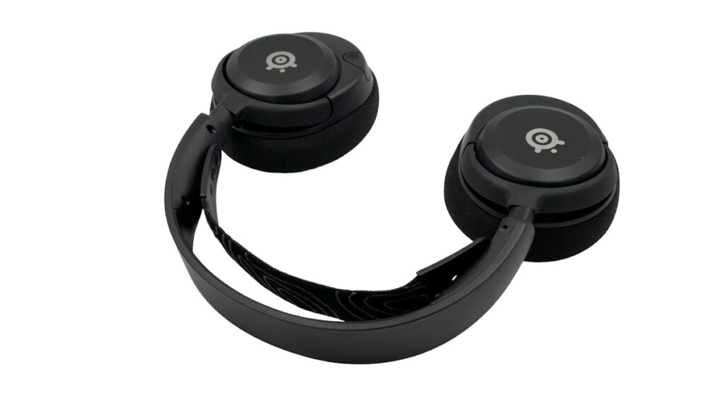 Anders als bei den meisten Headsets finden wir hier kein Polster am Kopfband. Stattdessen setzt SteelSeries hier auf ein elastisches zusätzliches Kopfband, welches sich in drei verschiedenen Positionen versetzen lässt. Das vergrößert auch den Spielraum in Sachen Kopfgröße.