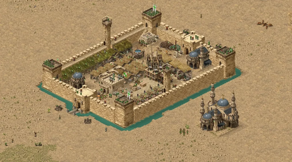 Das Spiel kombinierte die vertrauten Burgenbau-Elemente des Originals mit dem Wüsten-Setting der Kreuzzüge – eine Mischung, die nicht nur neue Herausforderungen, sondern auch ein einzigartiges Spielgefühl bot. Firefly Studios verstand es, historische Atmosphäre mit zugänglichem, aber taktisch tiefem Gameplay zu verbinden.
