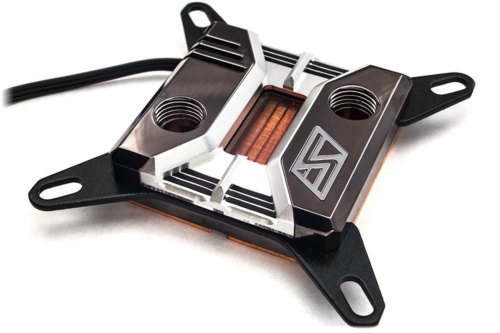 Der Apogee SKF verfügt außerdem über einen völlig neuen Kühlmotor, der aus 125 Mikron (weniger als 5 Tausendstel Zoll!) dicken, geschlitzten Lamellen besteht. Das Mittelstück ist ebenfalls anpassbar/ersetzbar. Der Apogee SKF ist mit allen aktuellen und zukünftigen CPUs kompatibel: Von Intels LGA 115x, 2011, 2011, 2011-v3 und 2066 bis hin zu AMDs AM2/3, AM4 und SP3/TR4.