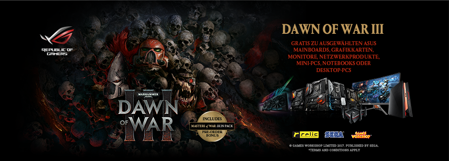 ASUS startet heute das Game-Bundle mit Warhammer 40.000: Dawn of War® 3 für teilnehmende Mainboards, Grafikkarten, Monitore, Netzwerkprodukte, Mini-PCs, Notebooks…