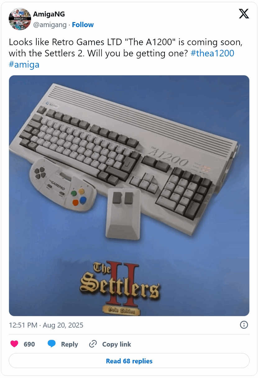 Der Tag im Überblick: Alle Meldungen Amiga A1200 kehrt nach 30 Jahren zurück – mit The Settlers II Gold Editionprazer22. August 2025 Retro Games Ltd hat auf der Gamescom 2025 eine vollwertige Neuauflage des Amiga 1200 vorgestellt. Anders als frühere Mini-Versionen verfügt…