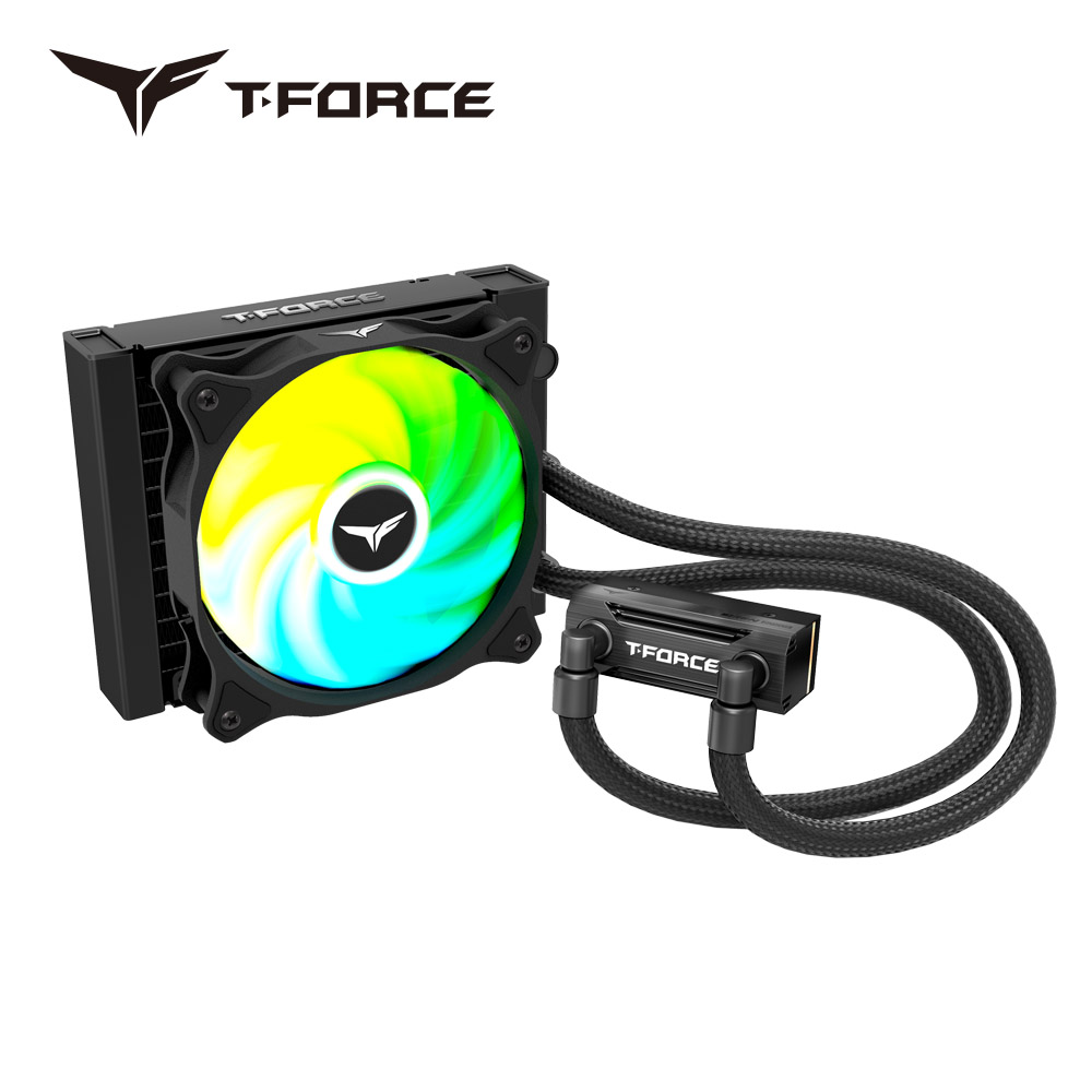 Der T-FORCE SIREN GD120S AIO SSD Cooler bietet eine hervorragende Kühlleistung, indem er die Präzisions-Aluminiumlegierung-Doppelrohr-Wasserblöcke mit doppellagigen thermischen Pads ausstattet, die es ermöglichen, den SSD-Controller-Chip und IC fest an der Kupferbasis des Kühlers zu befestigen. Die Pumpe verwendet ein Keramikwellendesign und drei leise Motoren, um eine leise, hocheffiziente und stabile Flüssigkeitskühlung zu erreichen. Darüber hinaus verwendet der T-FORCE SIREN GD120S AIO SSD Cooler einen 120-mm-Radiator mit 13 hochdichten Aluminiumlamellen, um die Kühlfläche zu vergrößern und die von M.2 PCIe 5.0-SSDs erzeugten hohen Temperaturen effektiv abzuführen. Sein 12-cm-ARGB-PWM-Lüfter kann außerdem die Geschwindigkeit präzise an die Systemtemperatur anpassen, um eine optimale Wärmeableitung zu erreichen und gleichzeitig Energie zu sparen und einen individuellen Lichteffekt zu erzielen.