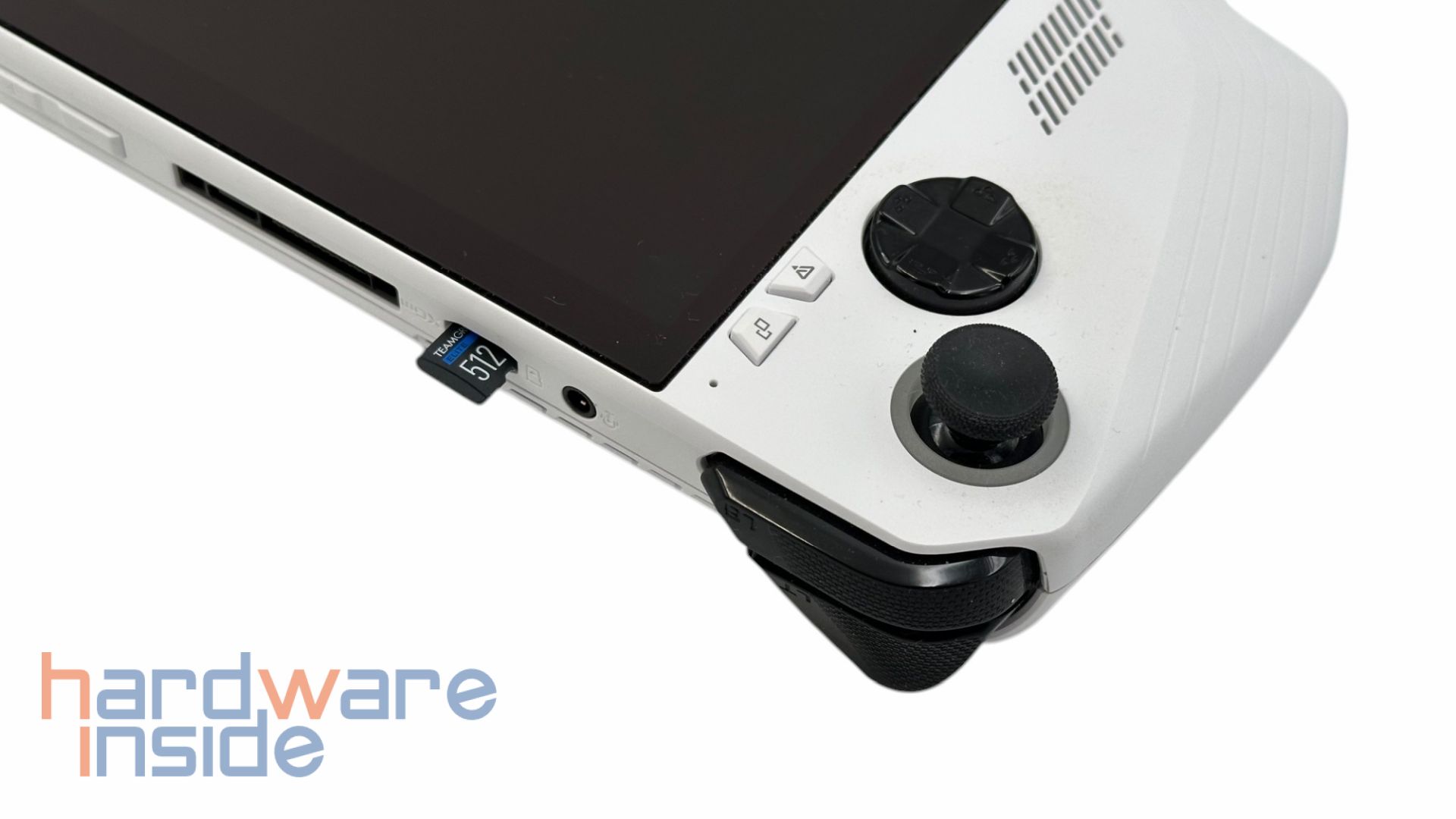 Praktischerweise verfügt die ASUS ROG ALLY Z1 Extreme, wie auch die ASUS ROG ALLY X, über einen Slot für microSD-Speicherkarten. Allerdings ist das Einschieben der Speicherkarte etwas schwierig, da man die Karte mit dem Fingernagel in Slot drücken muss. Beim Versuchen, das mit den Fingern zu machen, rastet die Karte nicht im Slot ein. Dies liegt allerdings am Handheld und nicht an der Speicherkarte.