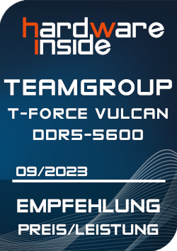 Mit dem T-Force VULCAN DDR5-5600 Kit hat TeamGroup ein gutes Arbeitsspeicherkit für PC-Systeme der Mittelklasse herausgebracht. Das Kit richtet sich an alle, die auf unnötigen Schnickschnack verzichten wollen. Das Kit besticht nicht nur durch sein schlichtes und zeitloses Design, sondern ist dank eines einzigen XMP-Profils auch sehr einfach zu handhaben. Die Performance des Arbeitsspeichers ist nicht nur im XMP durch geringe Subtimings sehr gut, auch im nichtübertakteten JEDEC Profil wird eine gute Performance geboten. Aktuell ist das 32 GB Kit ab 90 € erhältlich, was ein sehr gutes Preis/Leistungsverhältnis ergibt. Wir sprechen unsere Empfehlung aus.
