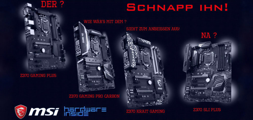 In Zusammenarbeit mit unserem heiß begehrten Partner MSI wollen wir euch die Möglichkeit geben, euer System aufzufrischen und nebenbei eines von VIER brandneuen Mainboards der Z370er Serie zu testen.