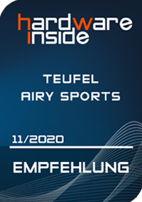 Die Teufel AIRY SPORTS kommen in einer braunen Kartonage mit schwarzer Beschriftung. Betrachtet man die Oberseite, so sind Herstellerlogo, die AIRY SPORTS als Darstellung und die Modellbezeichnung untergebracht. Auf der Rückseite finden wir alle wichtigen technischen Daten. Seitlich sind u. a. die fünf unterschiedlichen Farbbeispiele, wichtige Daten und der Firmensitz in Deutschland aufgebracht.![]()