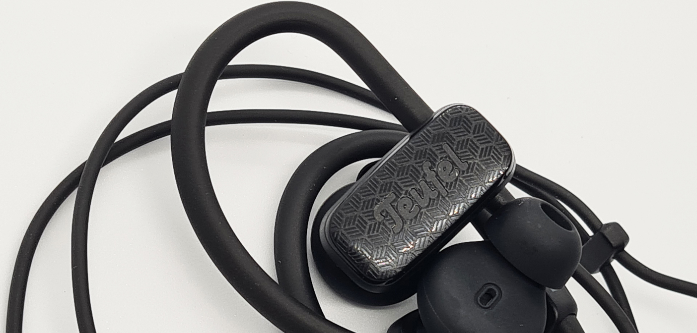 Nun kommen wir aber zu den AIRY SPORTS selbst. Extrem weiche, biegsame Ohrbügel aus antibakteriellem Silikon gewährleisten einen festen, komfortablen Sitz. Das einstellbare Neckband sorgt auch bei Brillenträgern für optimalen Halt. Die Bezeichnung L und R an den Kopfhörern macht ein Vertauschen quasi unmöglich. Im Inneren der AIRY SPORTS werkelt je Seite ein 12 mm Neodym-Magnet für präzise Höhen und für starken Bass. Teufel hat die AIRY SPORTS mit der Schutzklasse IPX7 ausgestattet. Das bedeutet, es besteht Schutz vor Schäden nach kurzzeitigem Untertauchen (max. 1 m Wassertiefe / bis zu 30 min). So kann der Nutzer auch bei Regen in den Genuss der SPORTS kommen, ohne in Panik geraten zu müssen, dass diese beschädigt werden.