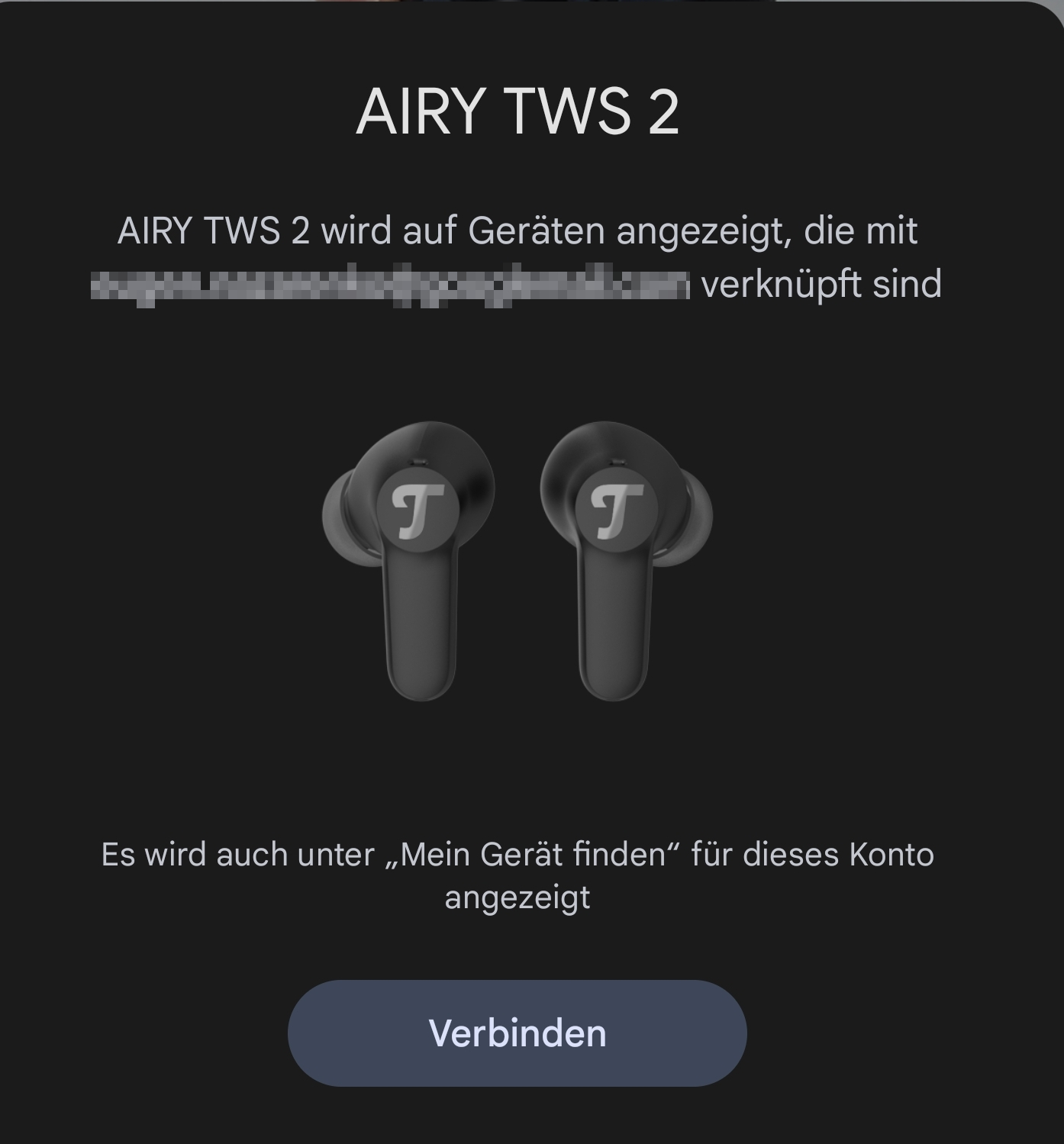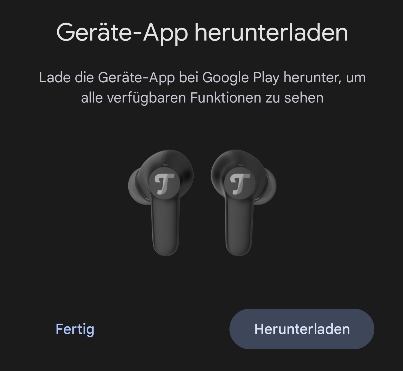 Beim ersten Öffnen der Ladeschale erhalten wir schon eine Nachricht auf unserem Smartphone, dass die Kopfhörer bereits mit unserem Google-Account verknüpft und betriebsbereit sind, was als Google Fast Pair bezeichnet wird. Bei dieser Gelegenheit wird auch gleich die App „Teufel Headphones“ auf dem Smartphone installiert. So verbinden wir die Teufel AIRY TWS 2 über die erhaltene Meldung oder verknüpfen die Kopfhörer klassisch über eine Bluetooth-Kopplung. Zum Aufladen werden die Teufel AIRY TWS 2 an der Unterseite mit einem USB-C-Kabel angeschlossen, wobei die LED gleich neben der Ladebuchse grün atmet.