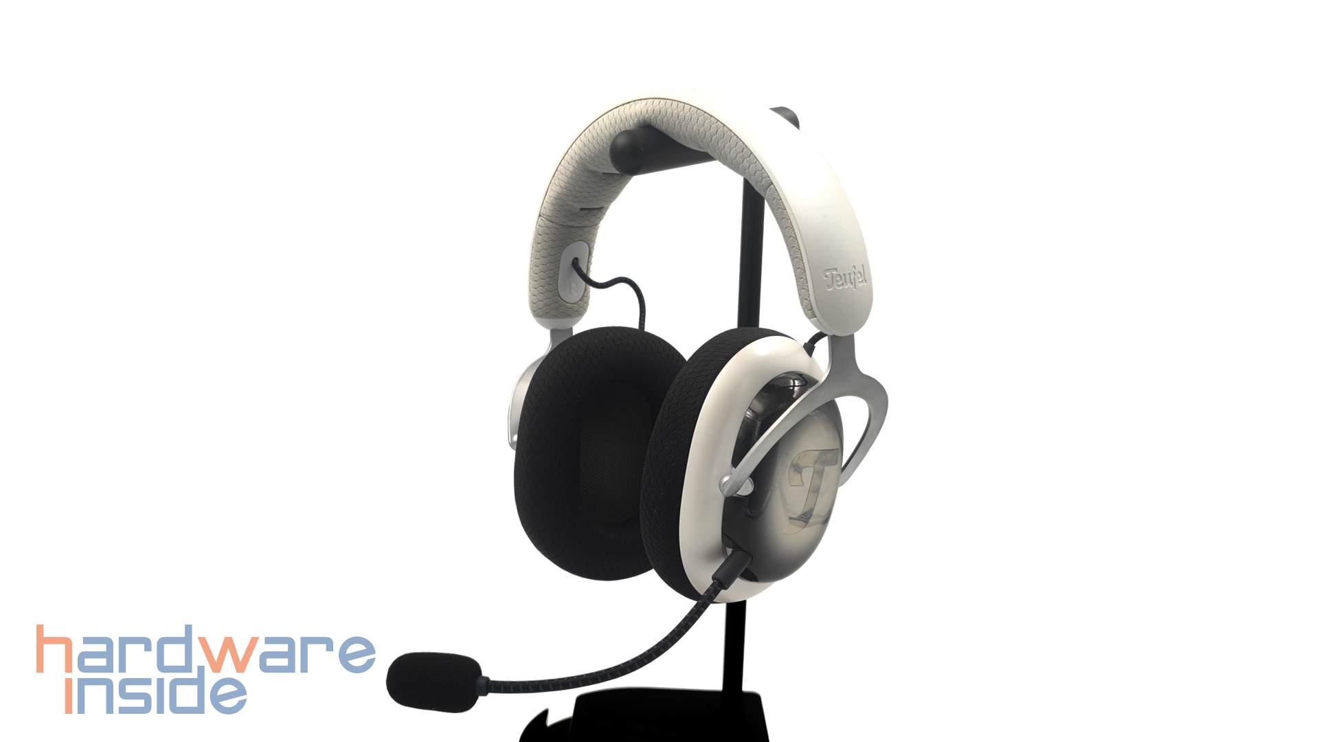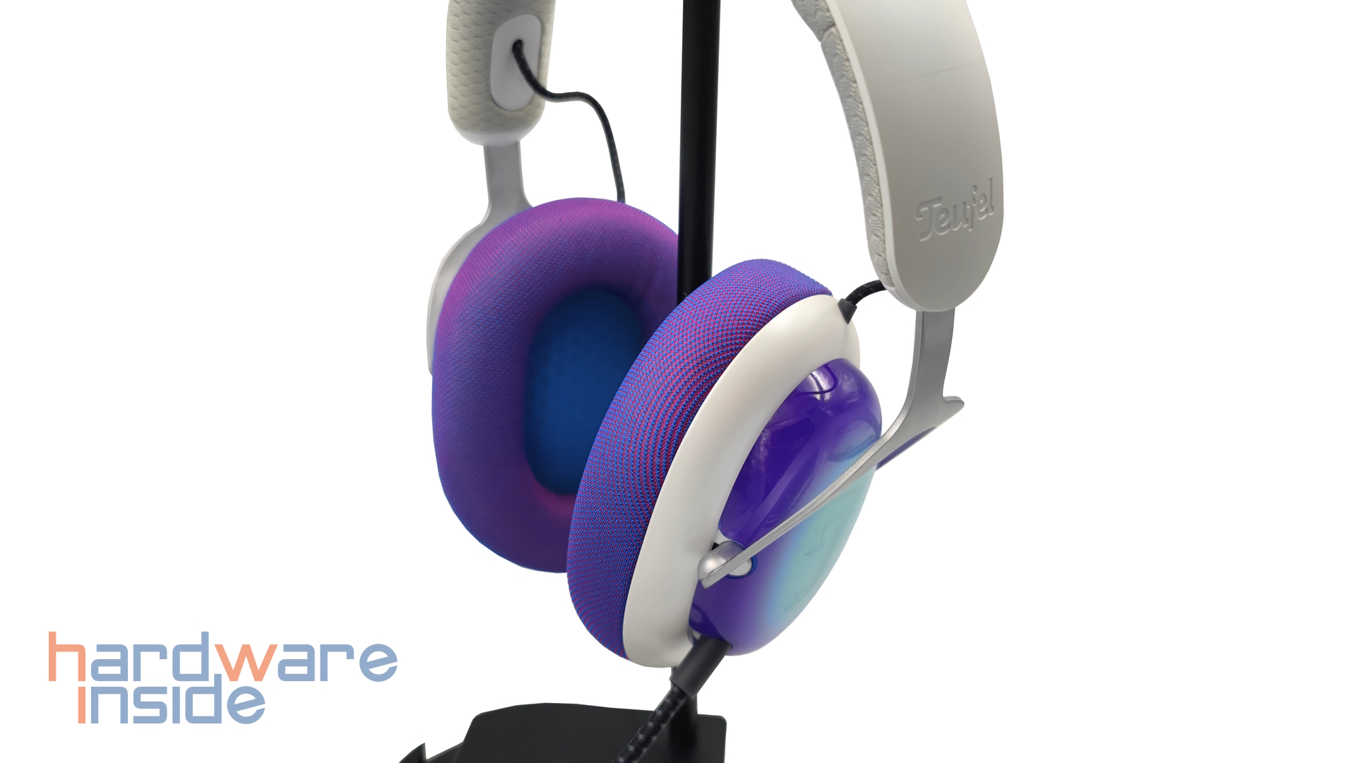 Das, was wir als das Grundgerüst des Teufel ZOLA Gaming Headsets bezeichnen, besteht aus Kopfband, Ohrmuscheln und den Halterungen, welche die Ohrmuscheln mit dem Kopfband verbinden. An der Außenseite besteht das Kopfband aus weißem Kunststoff, welches an der Innenseite weich gepolstert ist. Die Polsterung ist mit einem weißen Stoff überzogen. Die Halterungen der Ohrmuscheln bestehen aus Metall, welches silberfarben lackiert ist. Bei den Ohrmuscheln kommt ein weißer Kunststoff zum Einsatz, dessen Oberfläche farblich aber eher an Perlmutt Weiß angelehnt ist. Von den Ohrmuscheln geht jeweils ein Kabel ab und endet im Kopfbügel.