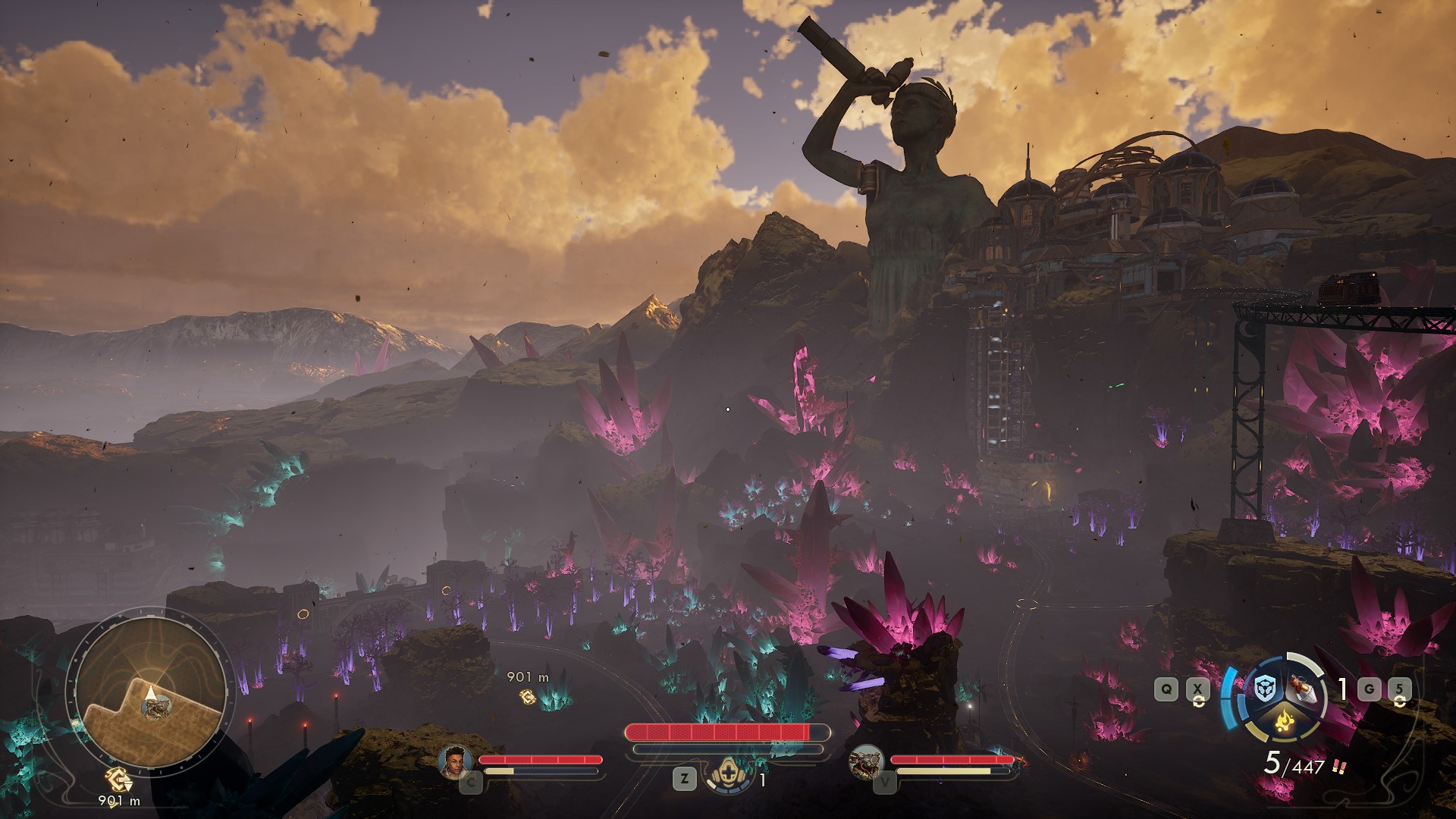 Die größte Stärke des Gameplays von The Outer Worlds 2 liegt in seiner Vielfältigkeit. Möchtest du als aufrichtiger und ehrbarer Erd-Direktoriats Mitarbeiter durch die Welt gehen? Kein Problem. Vielleicht als egoistischer Lügenbaron oder neunmalkluger Besserwisser? Auch diese Möglichkeit wird von Obsidian gegeben. Für besonders Abenteuerlustige gibt es auch die Option als sozial inkompetenter Dummkopf durch die Welt zu schlendern. Die Entwickler geben dem Spieler eine schier endlose Anzahl von Rollenspielmöglichkeiten, die Ihresgleichen sucht. Egal welchen Weg man geht, man hat stets das Gefühl, dass die eigenen Entscheidungen die Spielwelt enorm beeinflussen. Dies macht die Wahl der Dialogoptionen umso schwerer und interessanter.