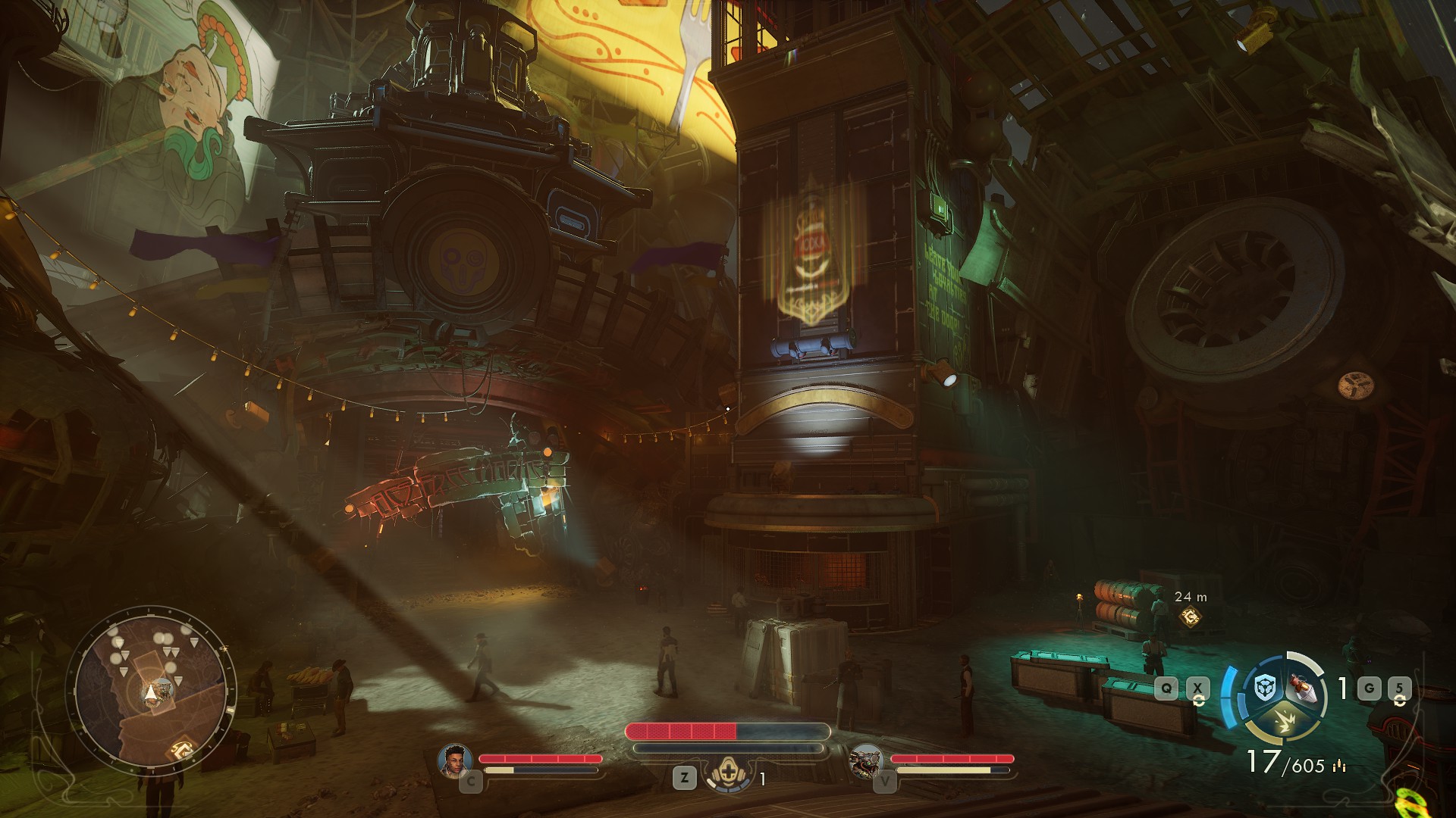 Die Möglichkeitenvielfalt endet nicht in den Dialogoptionen. Auch wenn es um das Ausschalten von Gegnern geht, können wir wählen, wie wir die Situation angehen wollen. Ob mit verschiedenen Schusswaffen ausgestattet, schleichend und nur mit einem Messer bewaffnet, oder in schwerer Rüstung und einem Knüppel mit ähnlich viel Haft, lässt The Outer Worlds 2 uns unsere Charakterfantasien frei ausleben.
